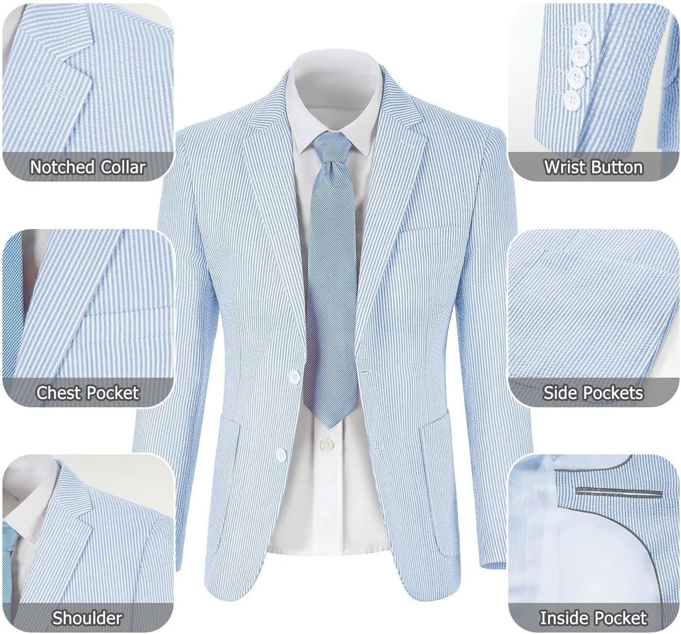 | Occasion Type | Formal Suits Slim Fit, Men Slim Suit Set, Seersucker Men Suit, Suit Men for Summer Beaches Wedding |