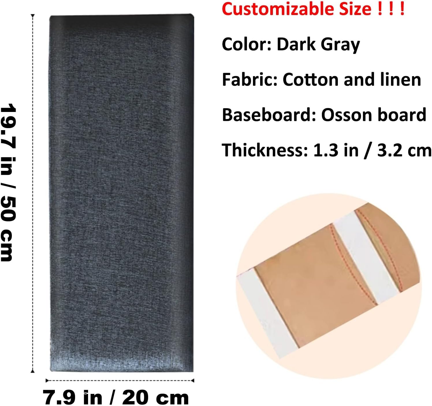 Transform your space effortlessly with our peel and stick headboard and upholstered wall panels, designed for versatility and style. These adhesive wall panels are perfect for enhancing the ambiance of any room, including bedrooms, living rooms, and nurseries. Each panel measures 7.9 inches by 19.7 inches (20 cm x 50 cm) and weighs only 0.8 lbs (400 g), making installation a breeze without the need for heavy tools or professional assistance.Crafted from a durable blend of cotton and linen, along with high-density sponge and density board, our 3D anti-collision wall padding not only elevates your home decor but also provides a soft cushioning effect. This makes it an excellent choice for households with children or pets, offering both aesthetic charm and practical protection against bumps and knocks to keep your walls looking pristine.Installation is straightforward: simply clean and dry the wall, mark your desired location, peel off the backing, and stick the panel in place. For optimal results, allow the panel to set undisturbed for at least 24 hours. The user-friendly adhesive ensures a secure fit while allowing for easy repositioning if needed.