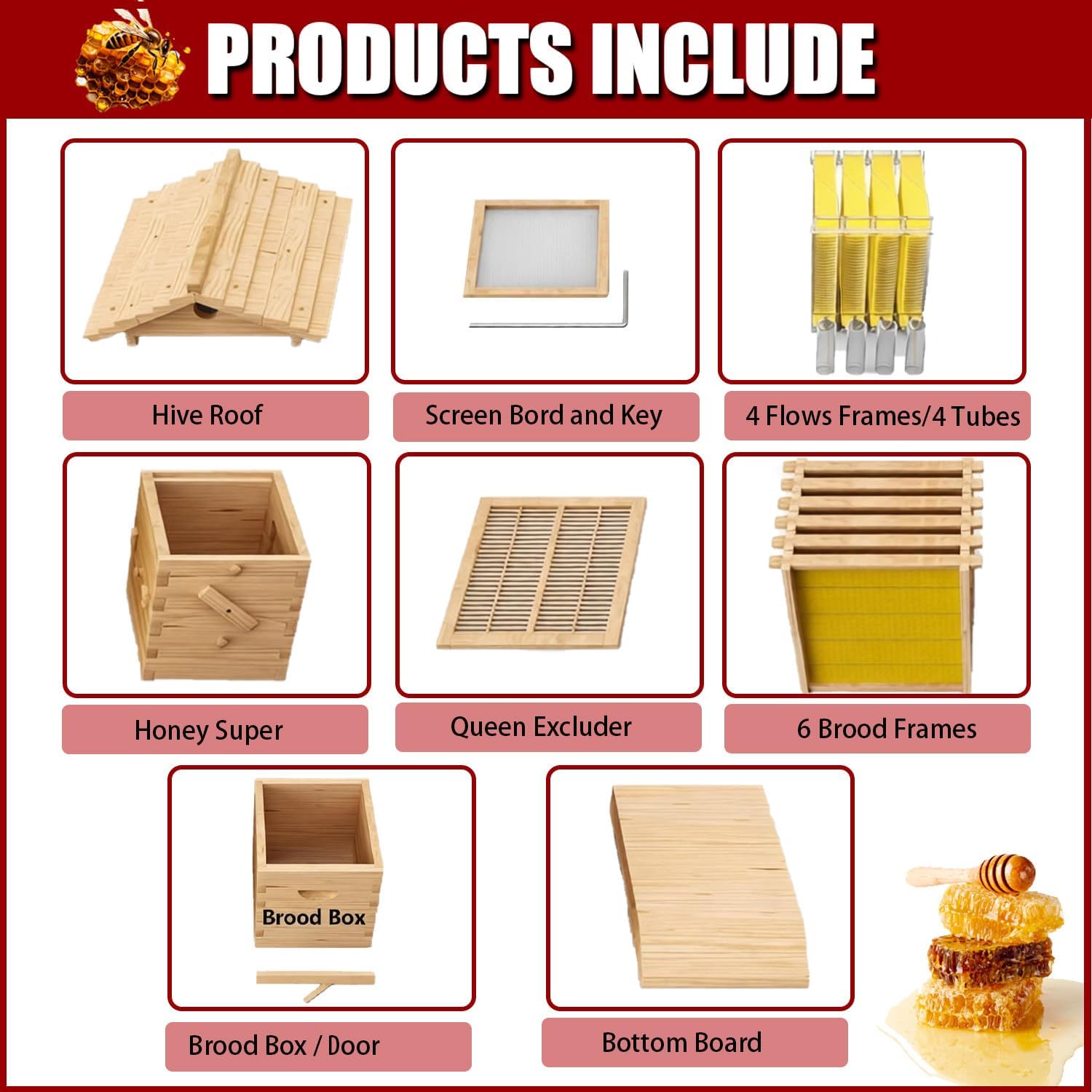 Experience the joy of beekeeping with our innovative Self-Flowing Beehive Starter Kit, designed specifically for gardening enthusiasts and aspiring beekeepers. This comprehensive kit includes a thoughtfully crafted beehive featuring an observation window, allowing you to monitor your bees without disruption, alongside a honey nozzle for effortless harvesting. **Key Features:** - **Self-Flowing Design:** Our unique beehive allows you to extract honey effortlessly. With a simple turn of a key, honey flows through the pipes directly into your collection container, ensuring minimal disturbance to your bees. - **Efficient Honey Collection:** Equipped with 4 automatic honey frames and 6 brood frames, this beehive provides optimal conditions for honey production and bee colony growth. - **Durable Construction:** Made from high-quality wood, this beehive is designed for longevity and effectiveness, ensuring your bees remain safe and healthy. **Product Specifications:** - **Name:** Self-Flowing Beehive - **Material:** Wood - **Product Dimensions:** 65.5 × 38 × 25.5 cm (25.8 × 14.9 × 10 in) - **Packaging Dimensions:** 57 × 46 × 32 cm (22.4 × 18.1 × 12.6 in) - **Gross Weight:** 12.5 kg **Package Includes:** - Beehive Starter Kit x 1 This beehive kit not only supports plant pollination, benefiting your garden, but also allows you to enjoy the sweet rewards of honey production. Perfect for beginners, it simplifies the beekeeping experience while maximizing productivity. **Notes:** - Please allow slight color variations due to lighting and a 1-3 cm measurement error due to manual measurement. - If you have any questions, feel free to reach out, and I’ll respond within 12 hours. Embark on your beekeeping journey today and contribute to a healthier ecosystem while enjoying the rewarding experience of honey harvesting!