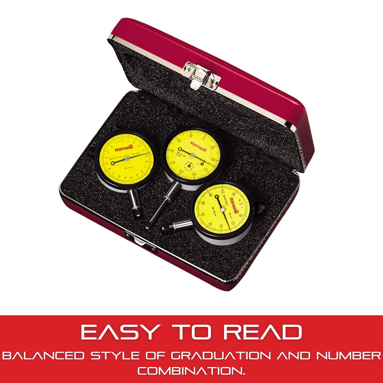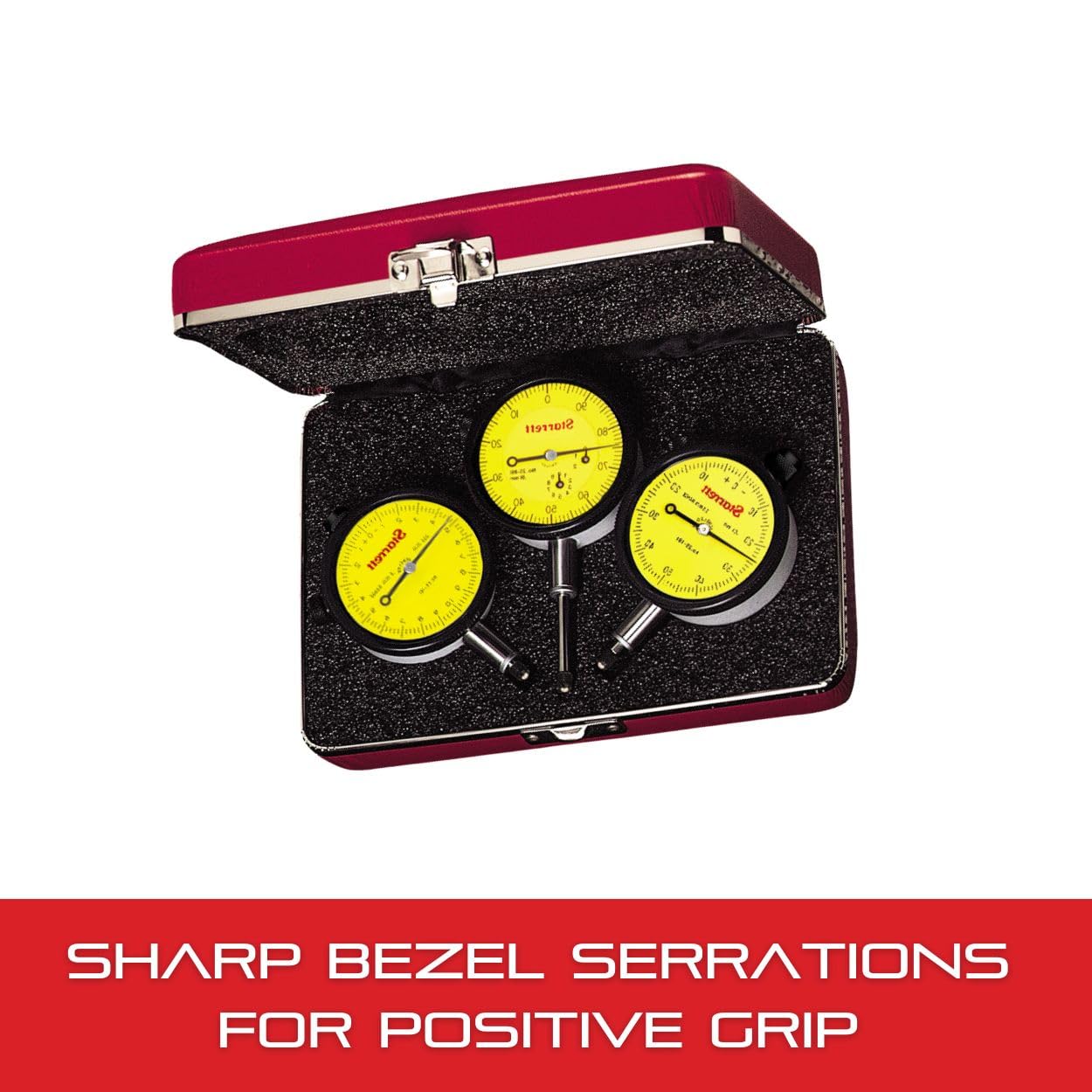 These sets provide in one handy, compact kit three 25 Dial Indicators to handle most gaging jobs at a minimum cost. Sets are ideal for tool and die shops, machine shops and tool rooms having occasional work where a heavy investment in dial indicators would not be practical.