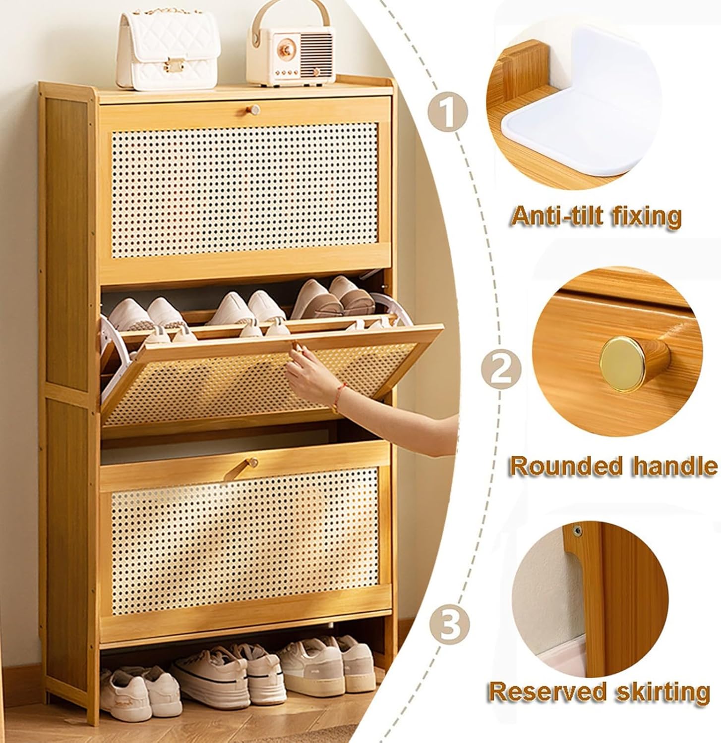 Enhance your home nization with our stylish and multifunctional shoe cabinet, expertly designed to balance aesthetics and practicality. This versatile shoe storage solution not only keeps your footwear neatly arranged but also serves as an attractive addition to any entryway or hallway. The spacious top surface provides an ideal spot for displaying bags, photo frames, and decorative items, transforming your entryway into a welcoming space. Meanwhile, the included storage boxes are perfect for stashing keys, personal belongings, books, and miscellaneous items, ensuring everything has its place. Key Features: - Crafted from premium bamboo, this shoe cabinet offers exceptional durability, making it a long-lasting addition to your home. - The freestanding design allows for easy placement in various areas, whether it’s by the door or in a closet. - With its modern aesthetic, this cabinet complements a wide range of home decor styles, from contemporary to rustic. Imagine coming home to a tidy space where your shoes are neatly nized, and your essentials are easily accessible. This shoe cabinet not only enhances your home’s functionality but also elevates your overall living experience. Keep your home looking pristine and inviting with this essential storage solution. Perfect for families, busy professionals, or anyone looking to create a clutter-free environment, this shoe cabinet is a must-have for any nized home.