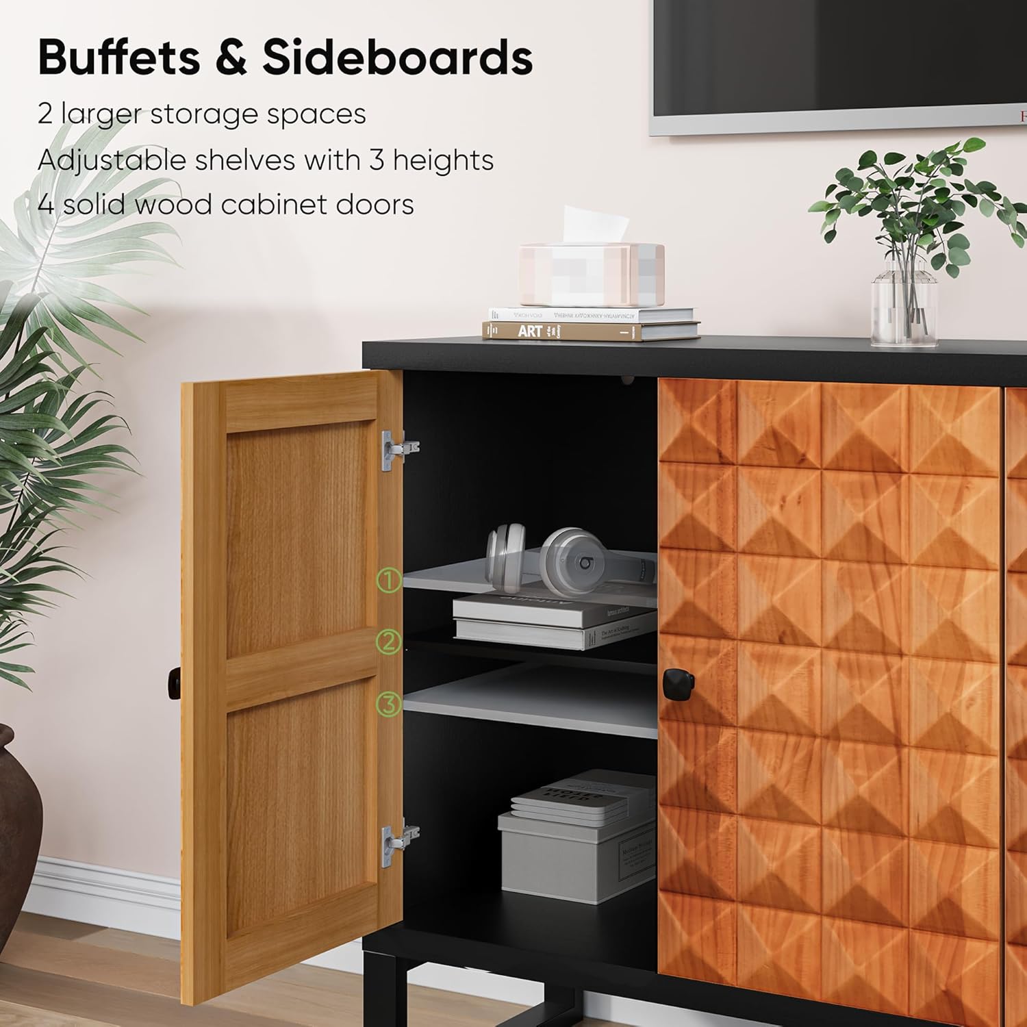 Sideboard Buffet Cabinet with Storage,Sideboard Cabinet with Carved 4 Doors,Kitchen Buffet with Adjustable Shelf for Living Room, Entryway, Hallway, Office, Kitchen