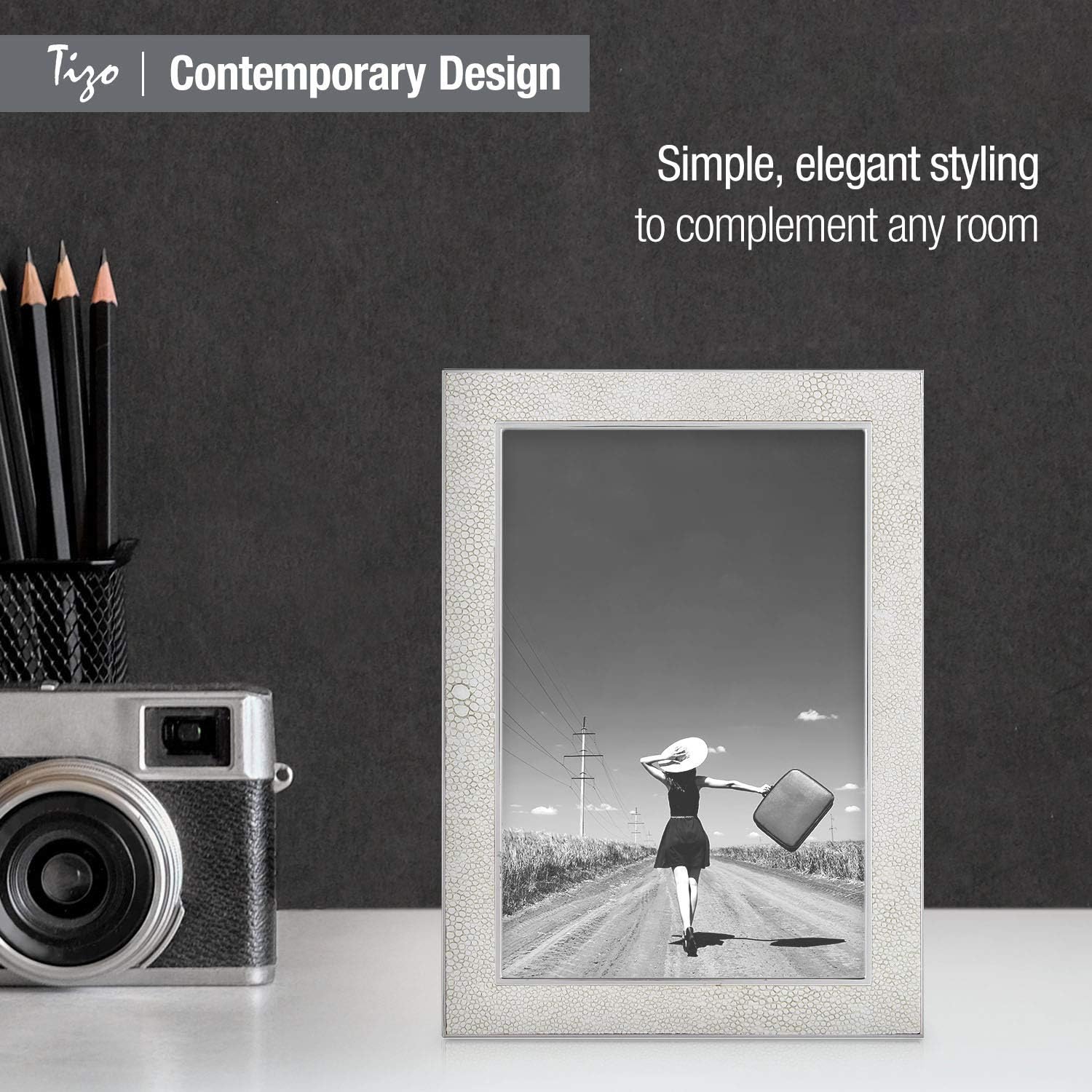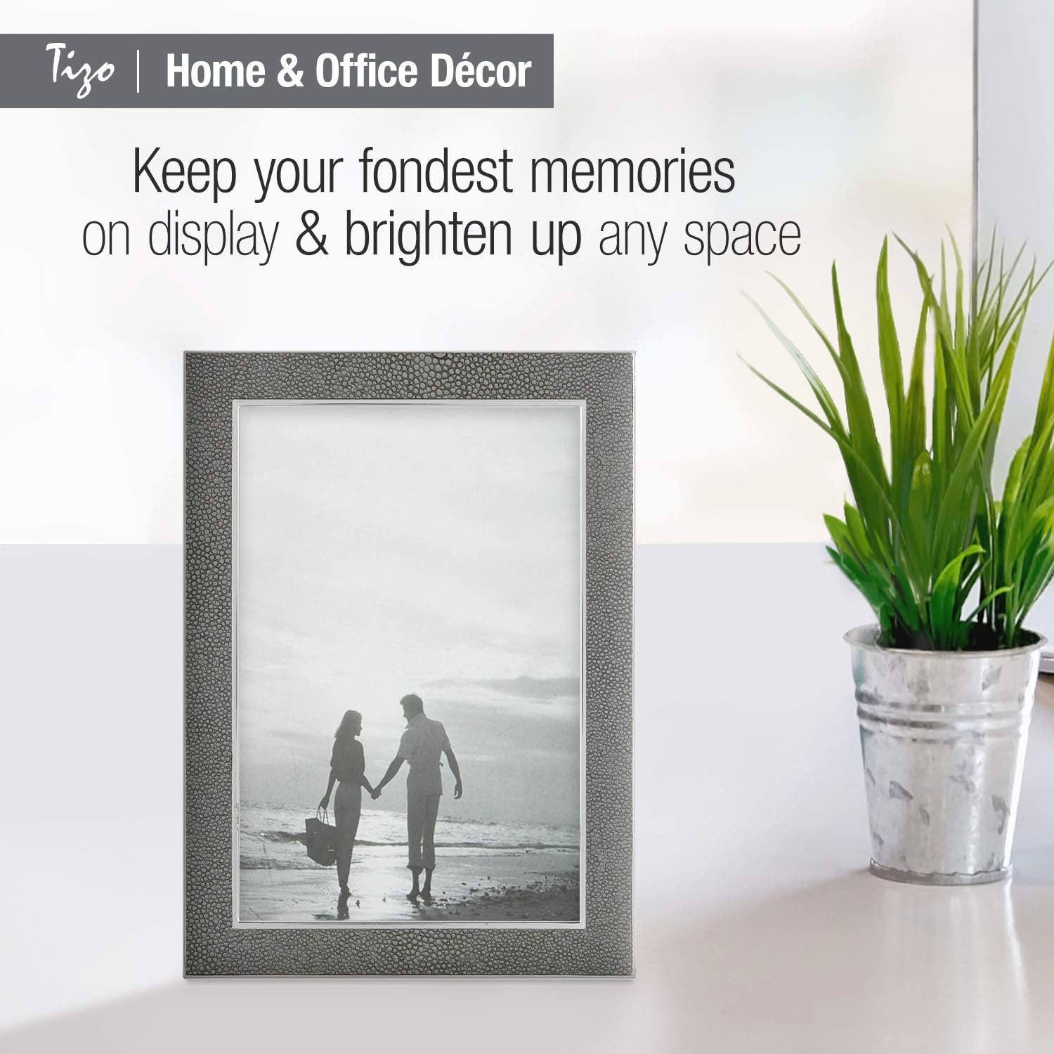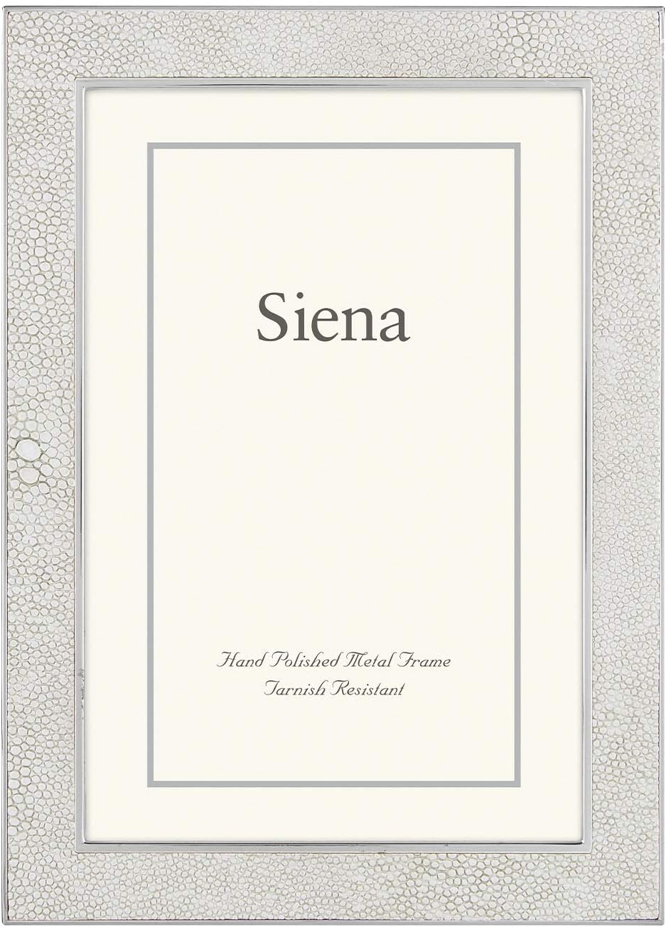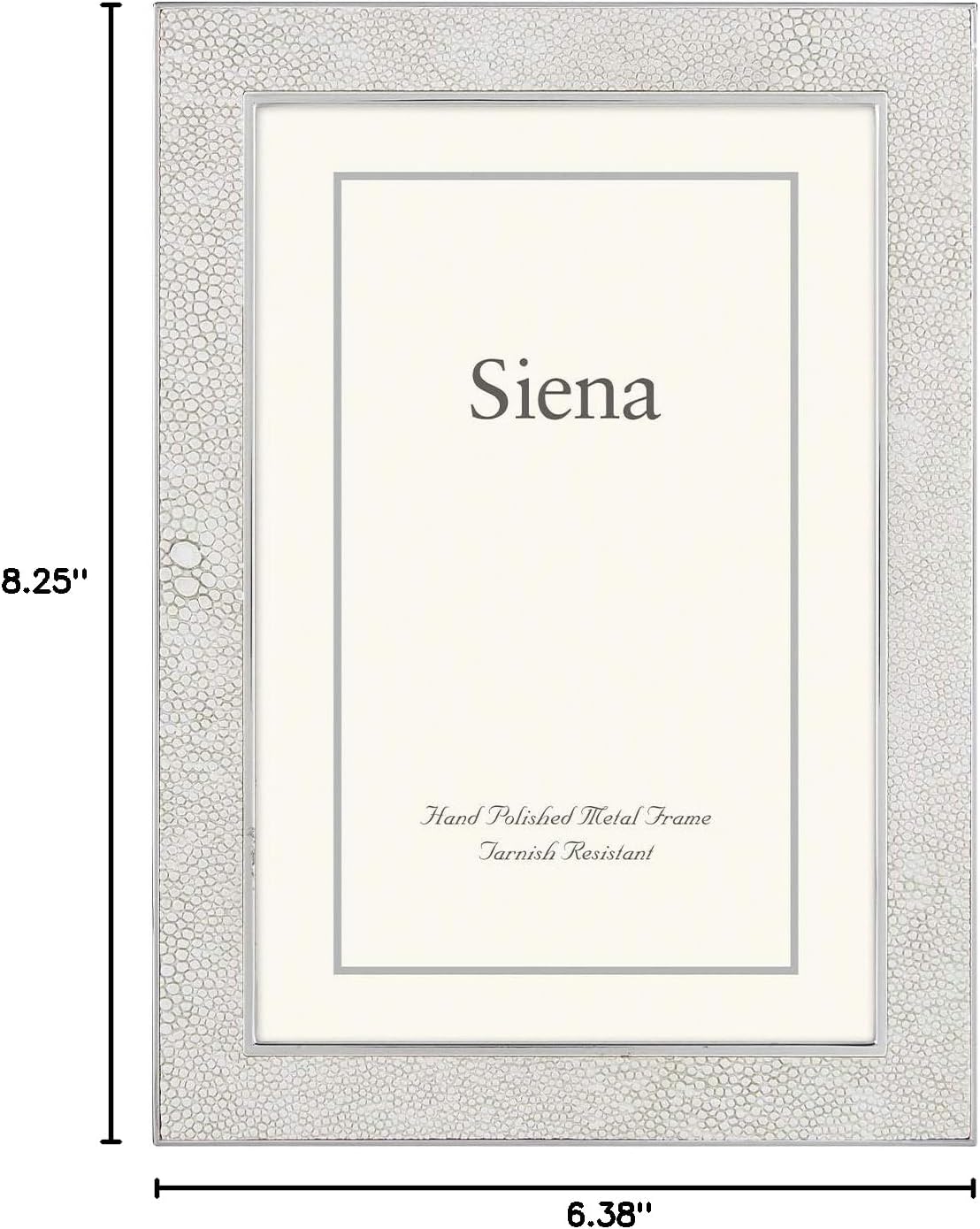 Every Great Memory Deserves a Great FrameShowcase your family portraits, cherished memories, and favorite art pieces in this elegant photo frame, featuring a polished cast metal frame, faux shagreen inset, and a brown velvet easel back that allows it to stand vertically or horizontally. A truly modern, sophisticated, and distinctive design, impeccably crafted to the highest standards. Keep your fondest memories on display and brighten up your home or office with decorations that mean something special!The Siena Collection has been curated to reflect the latest trends in interior design and home décor. Shape your environment with affordable, boutique quality contemporary photo frames in assorted sizes:4” x 6”5” x 7”8” x 10”Whether you need a special piece to accent your home décor, a memorable gift for a colleague or loved one, or the perfect photo frame to display cherished memories, Siena has just what you’re looking for.