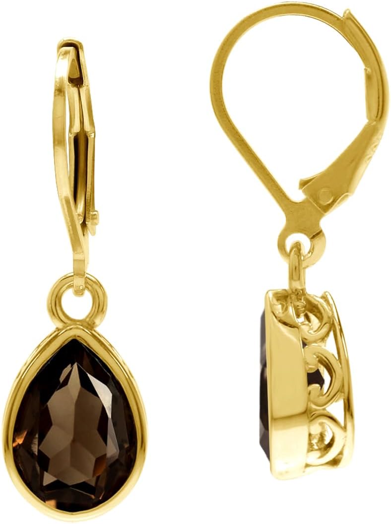 Silvershake 10X7mm Pear Shape Birthstone Gemstones White Gold Plated or Yellow Gold Plated 925 Sterling Silver Heart Victorian Style Drop Dangle Leverback Earrings Jewelry for Women