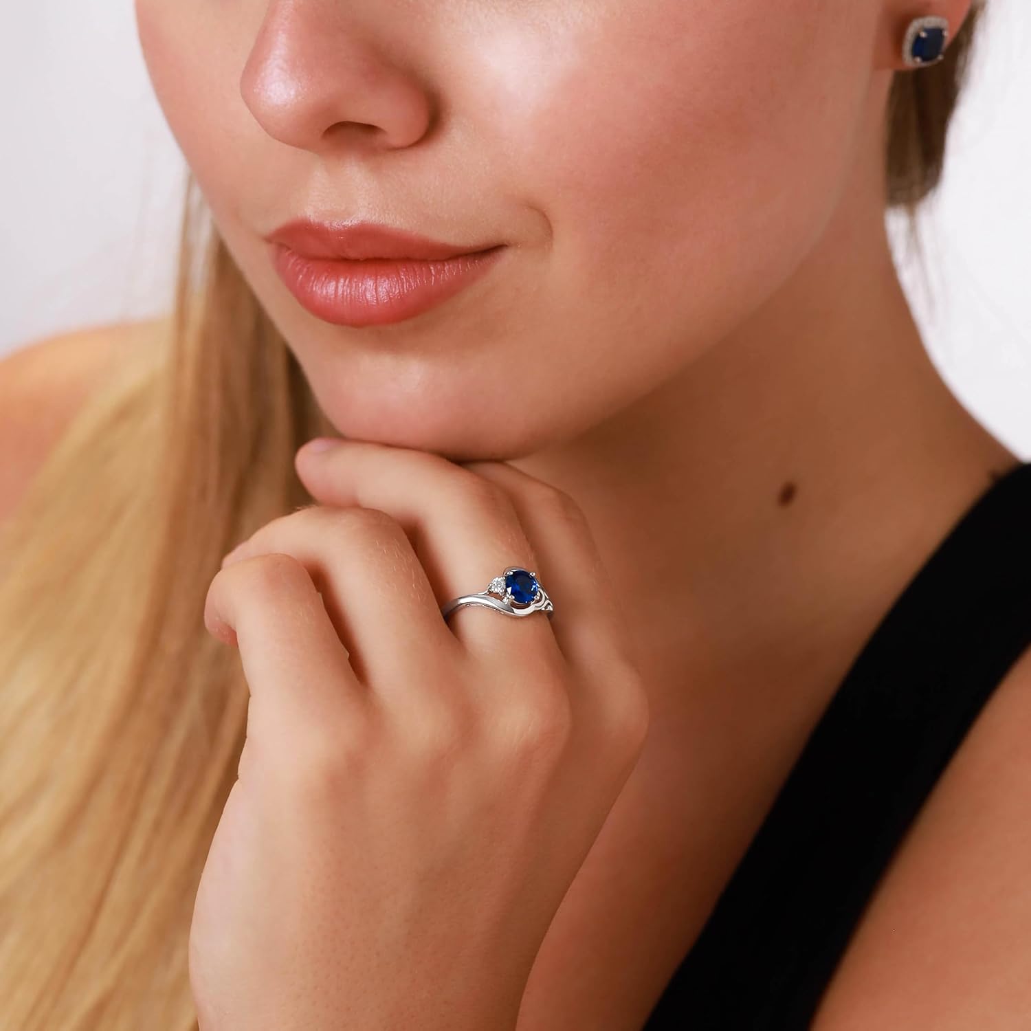Silvershake 6MM Round Shape Gemstone White Gold Plated or Yellow Gold Plated 925 Sterling Silver Engagement Promise Ring Jewelry for Women