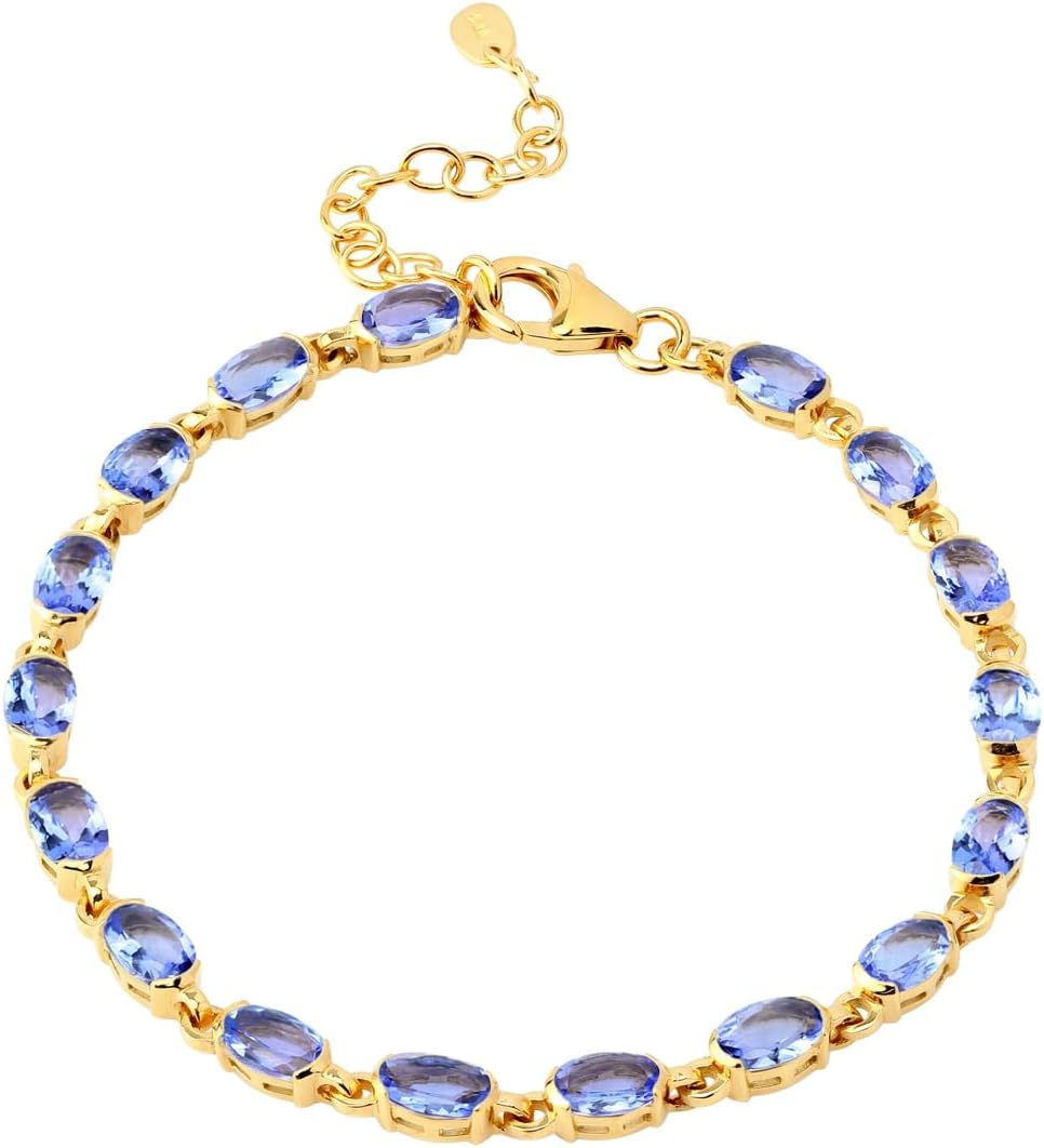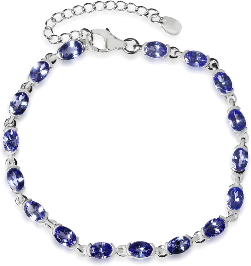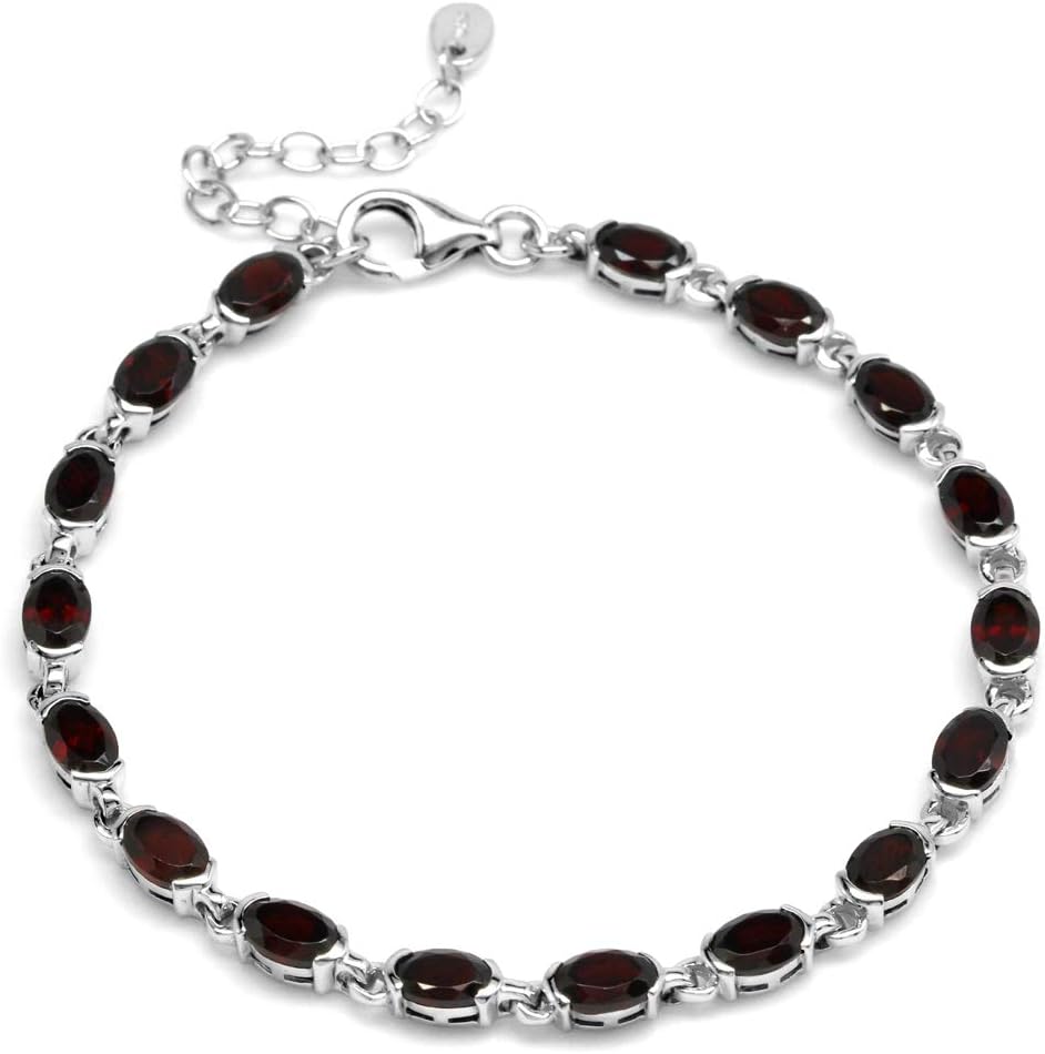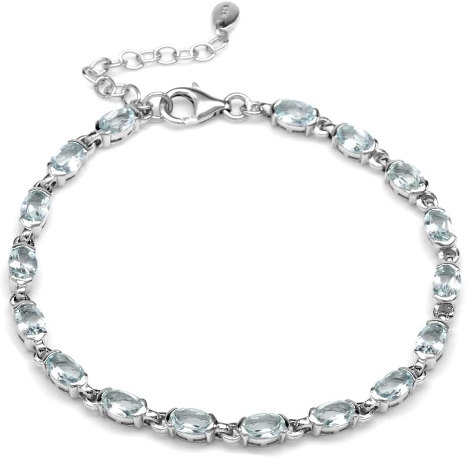Silvershake 6X4mm Oval Shape Gemstone White Gold Plated 925 Sterling Silver Tennis 7 to 8.5 Inch Adjustable Bracelet Jewelry for Women