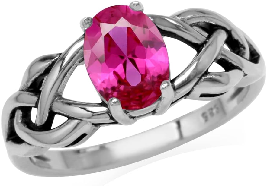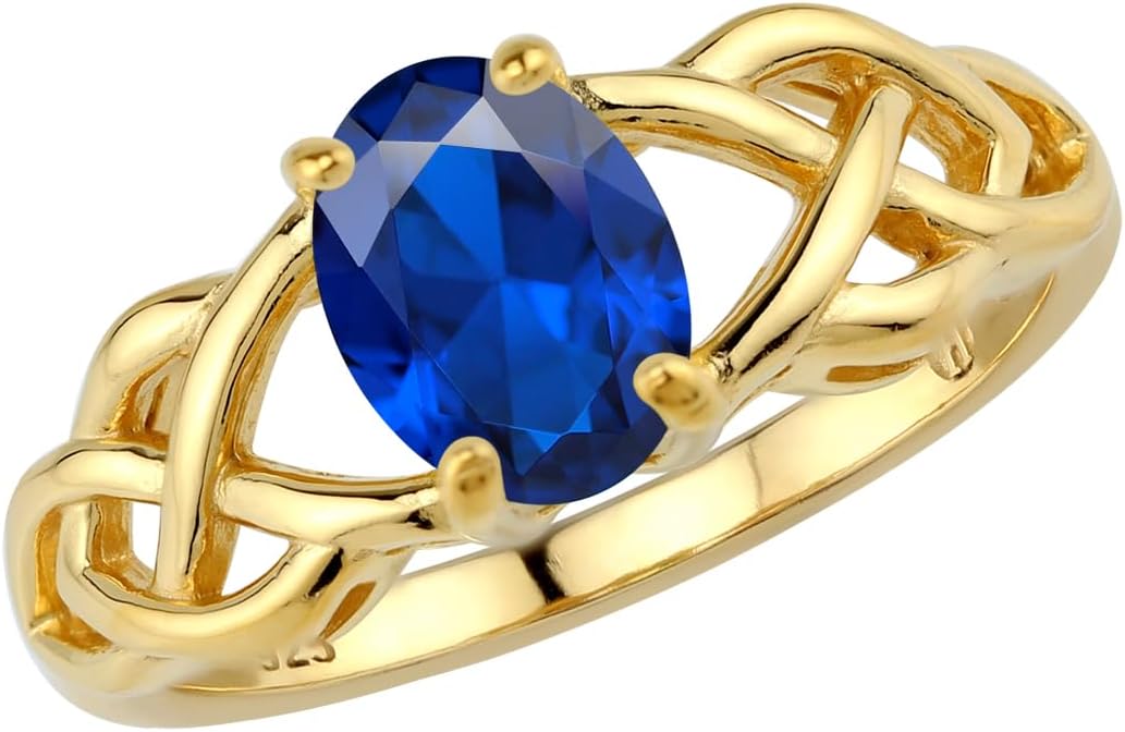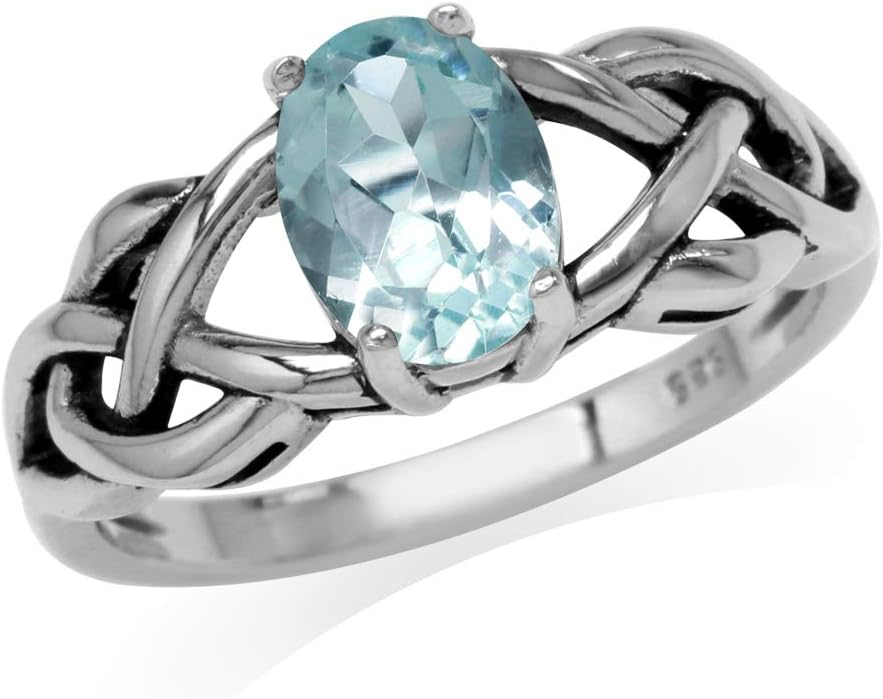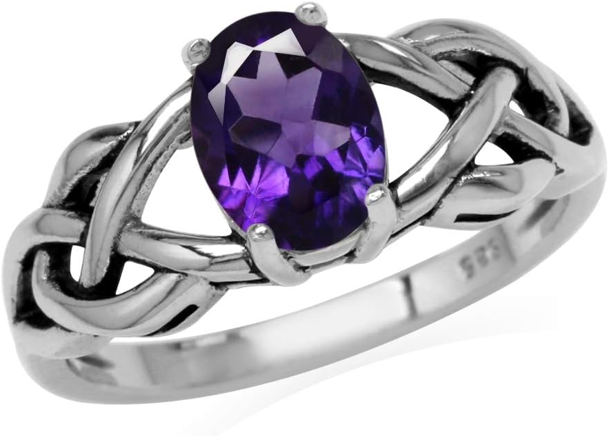 Silvershake 8X6mm Oval Shape Birthstone Gemstone Antique Finishing or Yellow Gold Plated 925 Sterling Silver Celtic Knot Weave Solitaire Ring Jewelry for Women