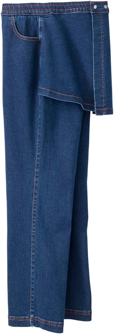 Reduces Exposure: Safer Open Back Dressing Solutions Quick Struggle-Free Dressing: Reduces Dressing Time Easy Access Dressing: Dressing from a Seated Position Complete Dignity: 2 Overlapping Back Panels Elastic Waist: Stretchy for Enhanced Comfort Convenient Side Pockets: Handy Seam Pocket on Each Side Soft & Comfortable: Great for Sensitive Skin and Ultimate Comfort Ideal Gift: A great choice for disabled adults, hospitals, nursing facilities, long term care facilities and for home care settings Senior Women's Adaptive Open Back Wheelchair Jeans are ideal for assisted dressing. This adaptive pre-washed denim pant features a discrete and generous back overlap for additional coverage for caregivers to easily secure this handicap garment. This pant also features an elastic waistband and a power stretch slub denim that's incredibly comfortable, allowing for unrestricted movement for all day comfort and great style. These adaptive handicap pants/slacks are terrific for elderly/seniors/adults who are disabled or wheelchair dependent. A great gift for disabled adults, home care, nursing homes, and care home settings. This comfy open back pant is also ideal for those in skilled nursing facilities and long term care facilities.