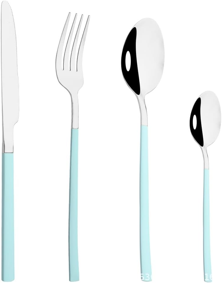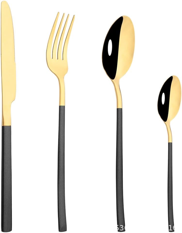 Material: Stainless steelPolishing process: Cloth polishing (mirror polishing)Set list: Knife, fork, spoon and spoonStyle: modern simpleStainless steel material: 410 stainless steelSpecifications: silverSpecifications: goldSpecifications: rose goldSpecifications: blackSpecifications: black goldSpecifications: black silverSpecifications: PlatinumSpecifications: white silverSpecifications: pink goldSpecifications: pink silverSpecifications: green goldSpecifications: green silverSpecifications: red goldSpecifications: red silverSpecifications: blue goldSpecifications: blue silverProduct quality level: first-class productProduct category: Knife, fork and spoon set.About our BrandOur brand is GOODJAYVEN. We have always been committed to Household items. Do our best to bring more creative products to our customers.