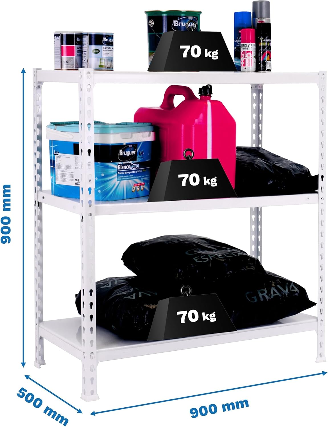 SCREWLESS METAL SHELF - With the screwless metal shelf from SimonRack, create your space with its easiest and fastest mounting system. Wooden shelves for better aesthetics. They can be combined and mounted at different heights. Our shelves are stable and do not tip over once assembled, so there is no need to fix them to the wall. Free access to all shelves. They adapt to all needs. Strong and durable, suitable for DIY and professional use. Ideal for garages, workshops, shops or warehouses. Load capacity and dimensions – The metal shelf measures 1000 x 1100 x 400 mm (height, depth, width) and 3 shelves. Load capacity and bending point is 200 kg per shelf, which means that when removing the load, the shelf returns to its original shape. This advantage gives increased durability over time and greater satisfaction of our shelves. Easy to assemble – Includes an illustrated instruction manual for assembly, explaining step by step the procedure to follow. Being a shelf without screws, only a nylon hammer is needed for proper adjustment of the shelves. Four plastic feet are included to prevent marking or damaging the floor. You can mount each shelf to the desired height and mount them on both sides for different functions. EUROPEAN QUALITY – The steel used to comply with EN 10130 is DC 01, allowing recovery after bending undergone The S325 steel profiles have a thickness of 1.5 mm with a coating of Z275 on the galvanized parts, and the shelves are made of chipboard 12 mm thick. EUROPEAN MANUFACTURING - All SimonRack products are made in Europe.