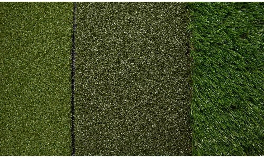 Work on your shots from three different lies and improve your game using the Pure Practice Mat. Practice at home on the tee turf, fairway, and 1st cut rough to help simulate real shots that happen on the course. Build ball contact and consistency to help increase distance and lower your handicap. Features include a Tee Turf design that holds all kinds of tees firmly, fairway cut to simulate long and short iron shots from the middle of the fairway with a tight lie, and a 1st cut rough to help practice ball striking in deeper lies and improve recovery shots. The durable mat is built to hold up through vigorous use and measures at 25” x 16” for easy storing.