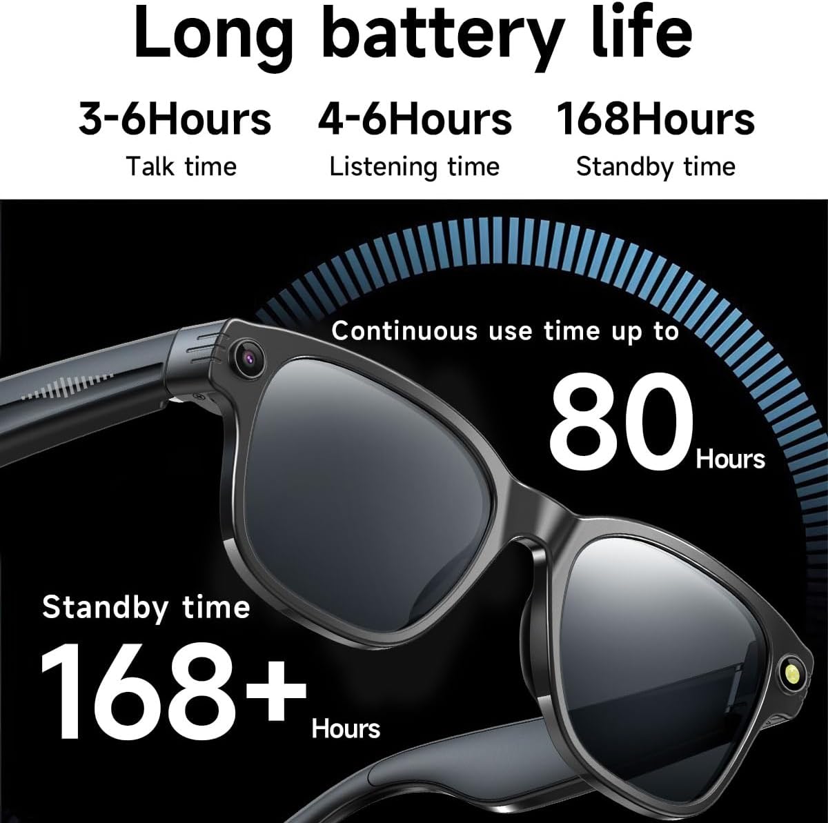 Smart Camera Glasses Recording Video AI Bluetooth Glasses Blue Light Blocking MULTIFUNCTION: - 4K Ultra-wide-angle Camera - Take Photos - Record Video - Record Voice - Play Music - AI Voice Control - Translation HARDWARE: APP: HeyCyan, No subscription fee Bluetooth: 5.3 Battery Capacity: 270mAh Compatibility: Smartphone iOS or Android Packing: - 1* Smart Glasses - 1* Charging Cable - 1* User Manual Any questions,please kindly contact us,we would always offer best solution to you.