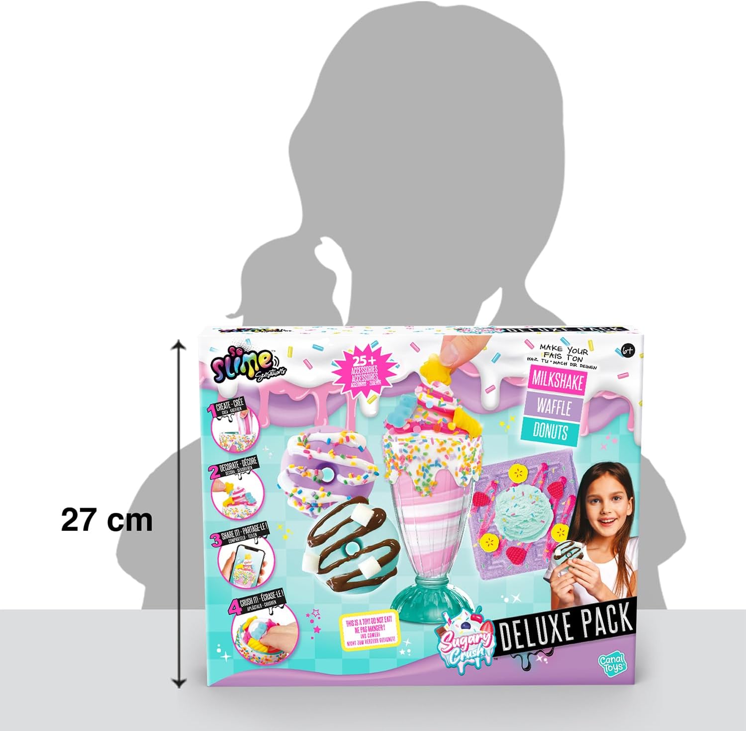 "This sensational Sugary Crush 3 Pack includes 3 sweet creations. Follow the easy instructions to make waffles, donuts and a milkshake! Have fun mixing all the ingredients together, just like the real thing. enjoy the sensations of the different compounds and decorations. Don't forget to take a picture and share before you crush it! "