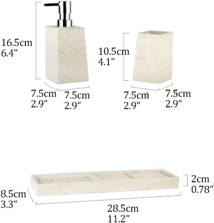 Soap dispenser features: quantitative hand soap out, avoid contact can use soap to clean hands and other hygiene, very convenient and hygienic. Product name: bathroom three-piece set Soap Dispenser Size: 7.5X7.5X16.5cm/2.9x2.9x6.4in Soap Dispenser Capacity: 350ml/11.8oz Material: Ceramic Number of pieces: 3 pieces (respectively: soap dispenser*1, mouthwash cup*1, tray*1) Color classification: white, light beige Note: Decorations (such as soap, toothbrush, toothpaste, trays, etc.) are not included. Notice: 1. Please note that there may be a little color difference due to different monitors. 2. If you have any questions, please feel free to contact us. 3. Due to manual measurement, there may be some errors, please allow 2-3 cm difference. I wish you a happy life.