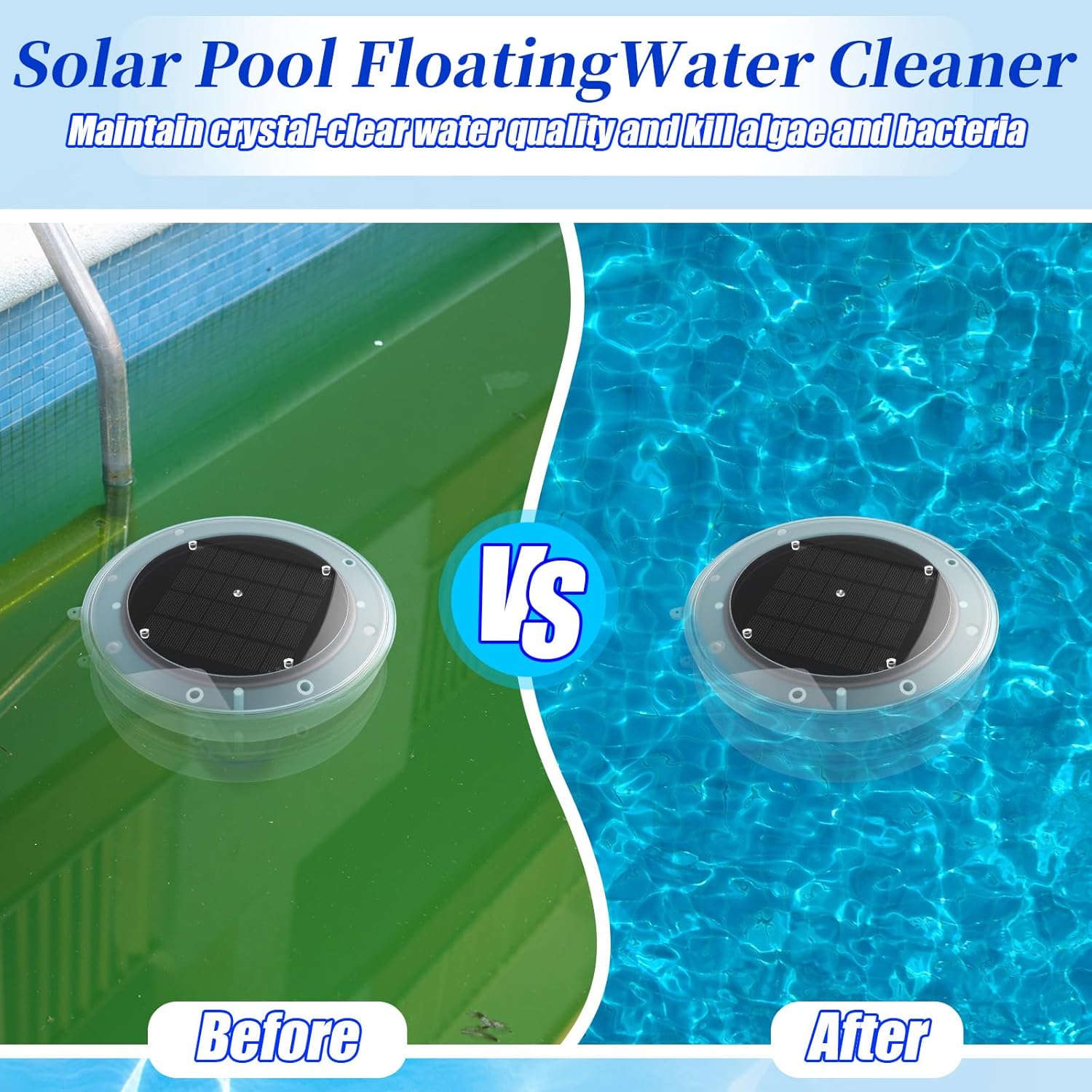 Features: Time-saving technology: By utilizing solar energy to release copper ions, this pool cleaner set simplifies pool maintenance. It reduces the frequency of chemical applications and cleaning tasks, allowing you to spend more time enjoying your pool rather than maintaining it. Experience the convenience of a cleaner pool with less effort. User-friendly design: The solar pool ionizer is designed for easy setup and operation. Simply place it in your pool, and let it float while it absorbs sunlight. This hassle-free approach allows you to enjoy a cleaner pool without the need for constant monitoring or complicated installation procedures. Specifications: Material: copper, stainless steel, plastic, monocrystalline silicon Color: multicolor Size: Solar pool water purifier: about 7.87 x 5.31 inches/ 20 x 13.5 cm Descaling balls: about 3.15 inches/ 8 cm Cleaning brushes: about 6.1 x 0.67 inches/ 15.5 x 1.7 cm Package includes: 1 x Solar pool ionizer 1 x Copper anode 1 x Spring 1 x Filter basket with screws 1 x Test strips 3 x Cleaning brushes 4 x Descaling balls Notes: Manual measurement, please allow slight errors on size. The color may exist a slight difference due to different screen displays. This product contains small parts and poses a choking hazard. Keep away from children and pets to avoid accidental ingestion