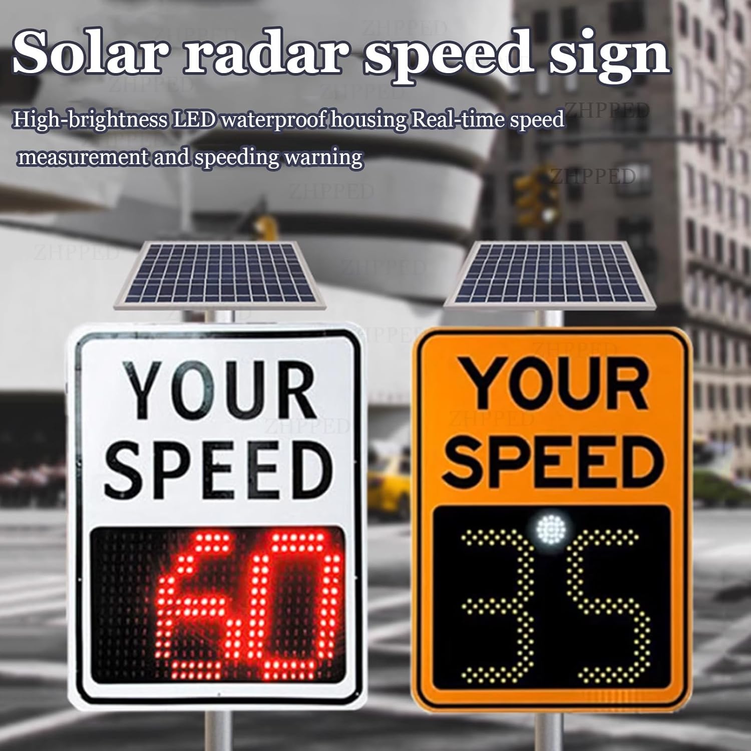 Introducing the Solar Radar Speedometer, a reliable solution designed with durable aluminum for long-lasting performance. This advanced speedometer offers remarkable accuracy, measuring speeds within 0.62 mph across a range of 1-99 mph, making it ideal for various traffic environments. With features such as altitude limit and low-speed function, this device is perfect for enhancing road safety in both urban and rural settings. Key Features: - Frequency Band: 24GHz for precise measurements - Measurement Angles: Horizontal 37°, Vertical 13.6° for comprehensive lane coverage - Lane Coverage: Effectively monitors 1-3 lanes to ensure accurate speed tracking - Operating Temperature Range: -40°C to 70°C, suitable for diverse weather conditions - Waterproof Rating: IP65 for reliable outdoor use - Exceptional Viewing Range: Greater than 500m for enhanced visibility - Lifespan: Over 100,000 hours, ensuring long-term usability - Available Dimensions: 50cm x 70cm (20 x 27 inches) and 60cm x 90cm (24 x 35 inches) Installation Guidelines: 1. Position the sign away from direct sunlight for optimal performance. 2. Ensure the LED light functions by covering the solar panel to simulate nighttime conditions. 3. Adjust the solar panel orientation during installation for maximum sunlight exposure. 4. Clean the solar panels every three months to maintain efficient power generation. 5. For periods of inactivity, switch off the power to prevent battery depletion. If not used for an extended time, charge the solar panel in full sunlight for three days before normal operation. This Solar Radar Speedometer is an essential tool for enhancing safety on the road, perfect for schools, construction sites, and residential areas. Contact us for any inquiries, and we will respond within 24 hours.