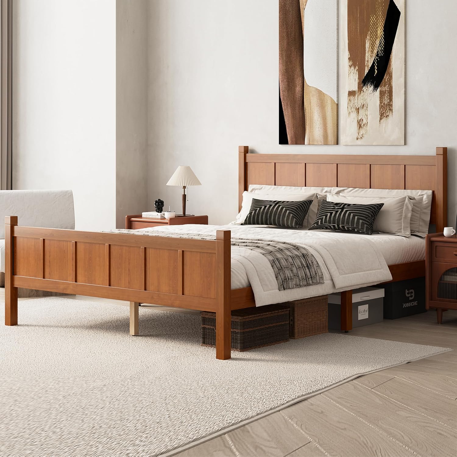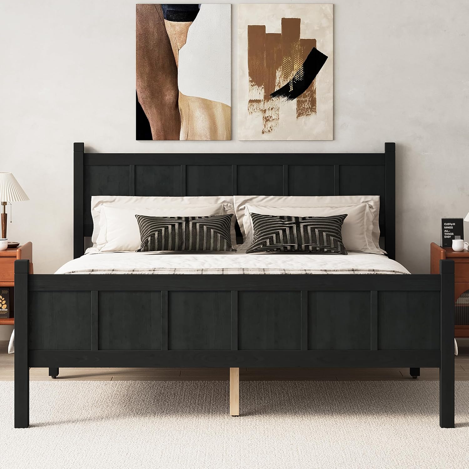 • [Solid & Sturdy] The bed frame is made of solid Pine,MDF and Plywood, providing a dense and strong support for up to 400lbs. The construction ensures both a lifetime of use, and a sturdy bed frame with a head which won't wobble.