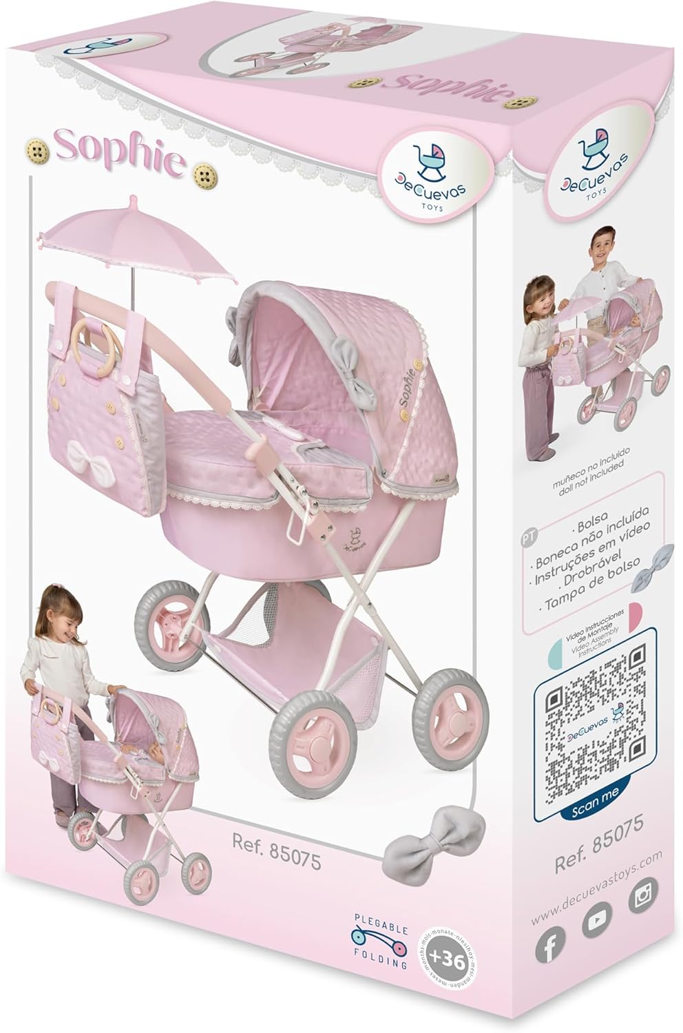The Decuevas Folding Doll Car is ideal for dolls up to 48 cm. Its sturdy metal construction and durable materials ensure its longevity. Features a protective umbrella and a bag for essential accessories. Easy folding allows for compact storage. Recommended age: 3 years and up.