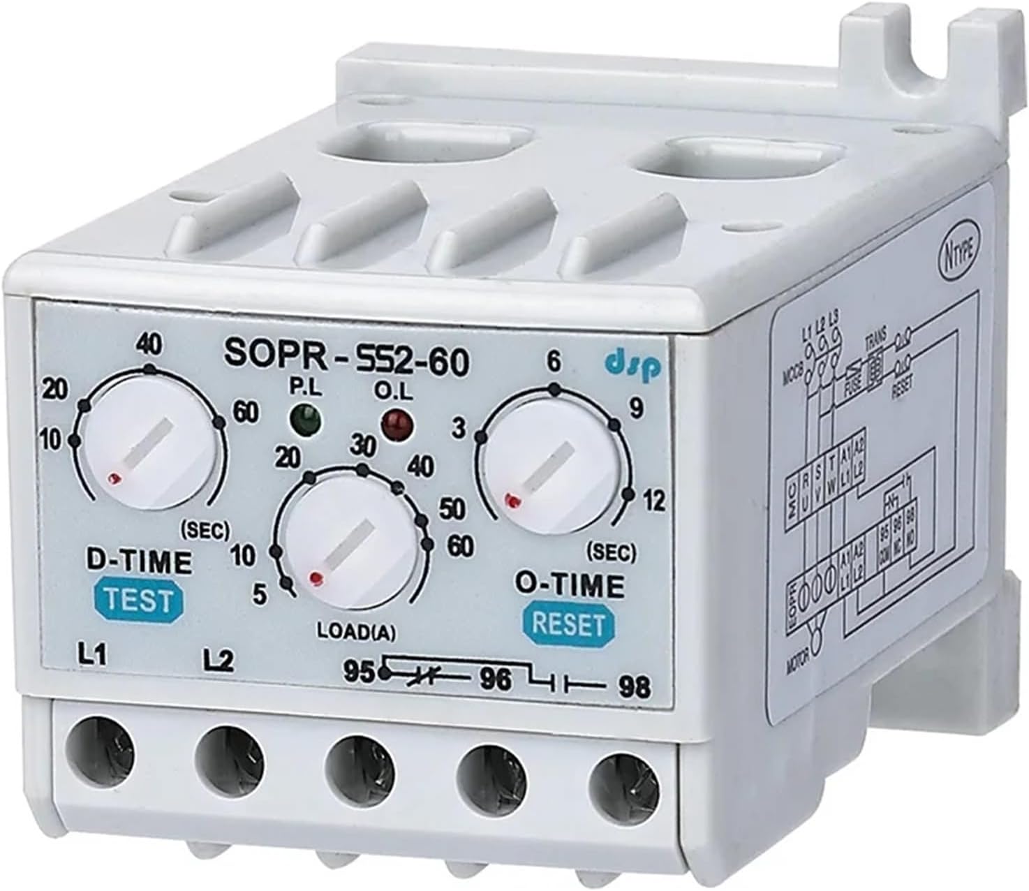 relayRelaySpecificationsCurrent Range............ : Type05) 1-6.5AType30) 5-30AType60) 5-60AType120) 10-120aType600) Use an external CT(secondary 5A)over 60A with 05 type.Operating Voltage(Un).: Tpye110) 110VACTpye220) 90-260VACTpye380) 180-460VACOperating Frequency....: 50/60Hz<;;2WOperating Temperature: -20.....+55Waiting(t)......................: D-Time 0.2-60sO-Time 0.2-12sAsymmetry Set.............: %±10Contact.........................: 5A 250VAC Resistive Load