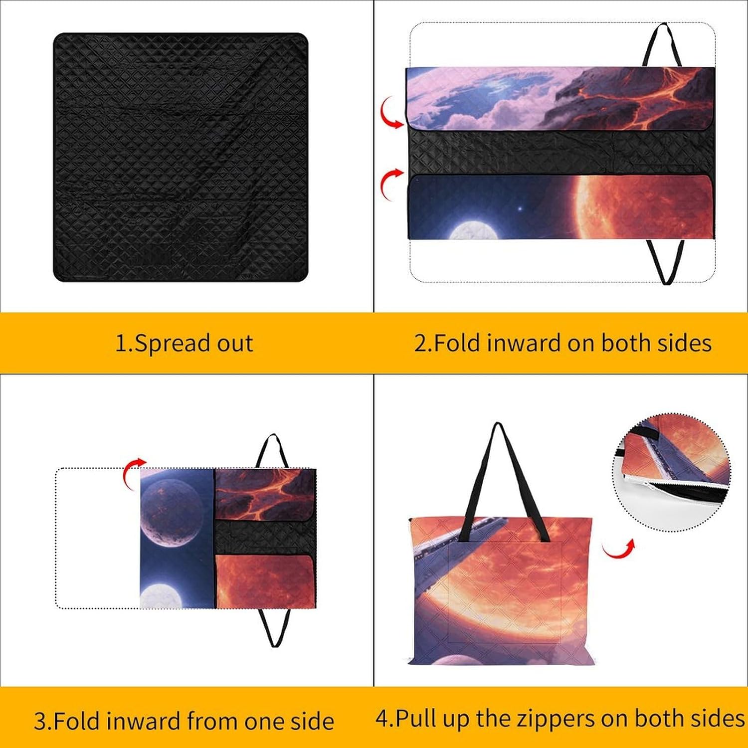 Elevate Your Outdoor Experience with the Versatile Picnic BlanketCollapsible Picnic Mat Picnic Essentials Convertible Tote Bag Portable Rug for Picnics Beach Essentials Camping Pad Cute Picnic Blanket Bag Foldable Travel Mat Large Family Picnic Blanket Outdoor Picnic MatsSuperior Protection and ComfortForget worrying about wet grass or prickly sand. Our blanket features a smart 3-layer construction. The top layer is soft to the touch, while the middle padding provides just the right amount of cushioning against hard ground. The bottom layer, made from durable 210D Oxford cloth, is completely waterproof and acts as a barrier against moisture and dirt, ensuring you stay clean and dry.Designed for the Modern ExplorerWe understand that space is precious when you're on the move. That's why our blanket features an ingenious foldable design. In seconds, it transforms from a full-size mat into a compact carry bag with a handle. This makes it incredibly easy to transport and store. But the innovation doesn't stop there; the carry bag itself is designed to be used as a sturdy shopping tote, making this blanket a true 2-in-1 essential for eco-conscious shoppers.Choose Your Perfect Size:59 x 40 inches / 150 x 100cm: Ideal for couples or solo use.59 x 59 inches / 150 x 150cm: Perfect for a small family or small group of friends.78.8 x 78.8 inches / 200 x 200cm: Our large size, perfect for family gatherings and group outings.Whether you're planning a beach vacation, a camping trip, a hike, or a simple day at the park, this cute picnic blanket is your reliable partner for comfort and convenience. Pack it, carry it, and enjoy the outdoors without compromise.
