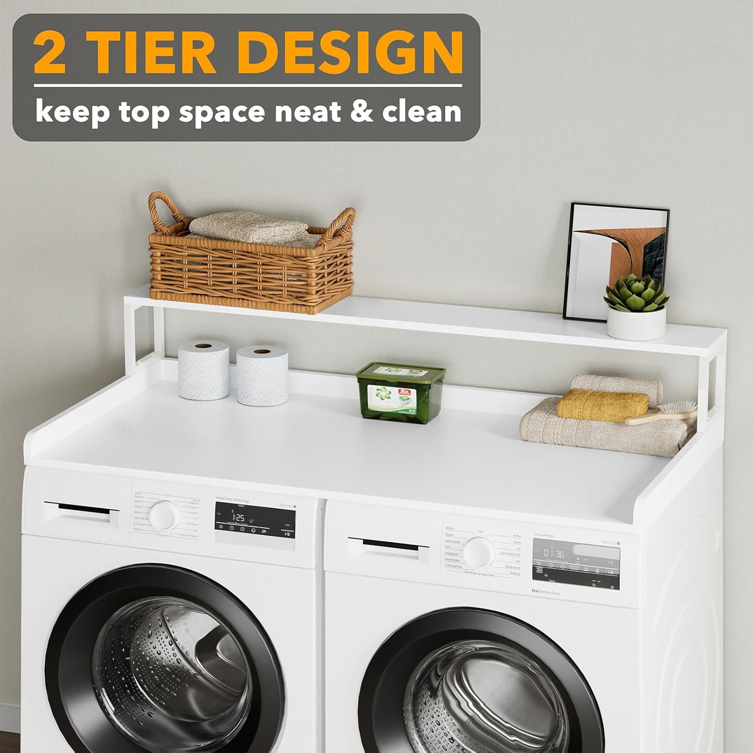SpaceAid 2-Tier Washer Dryer Countertop, Laundry Topper with Rack Shelf 54" Width x 27.5" Depth x 10" Height Organizer Cover for Washer and Dryer Laundry Hamper Counter Storage (White)