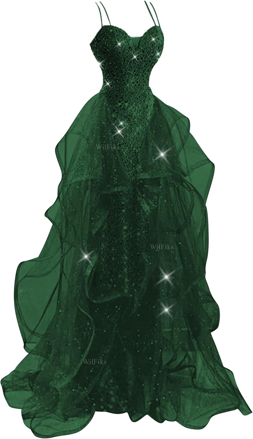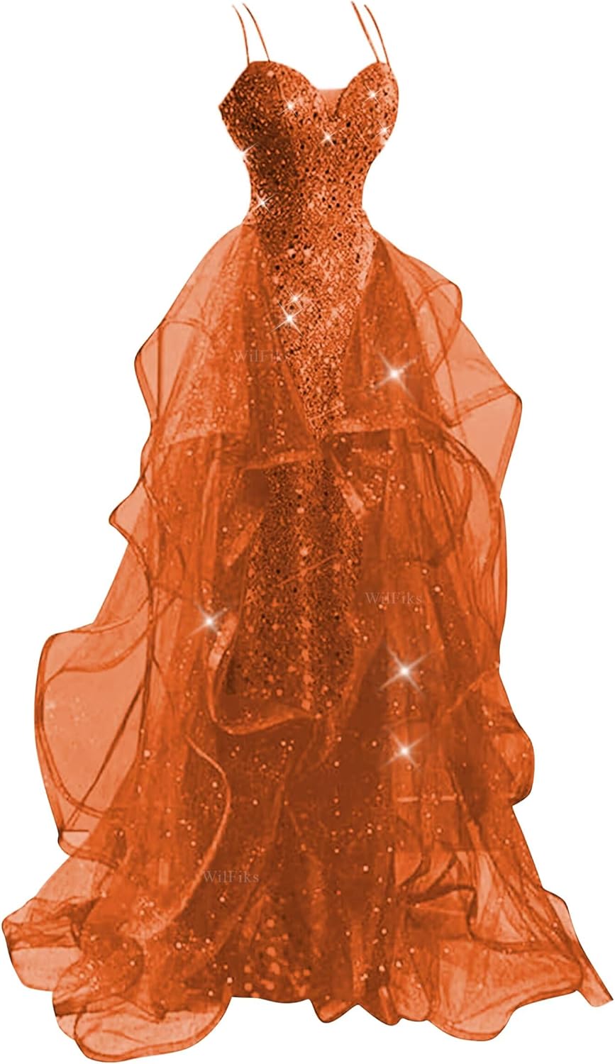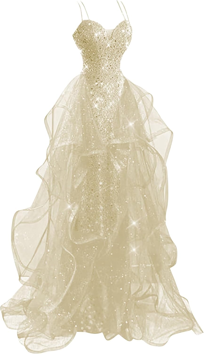 | Fabric Type | Spaghetti Straps V Neck Sequin Prom Dresses for Teens 2026 Long Sparkly Tiered Tulle Ball Gowns for Women Formal Evening Party |