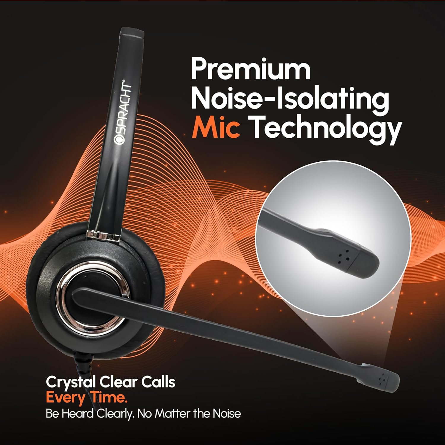 Spracht Wired Headset for Desktop Phone | Single Ear Universal Headset for Office Telephones | Mono Head Set with Microphone - Works with Polycom Digium Nortel Yealink Grandstream Cisco Zum RJ9