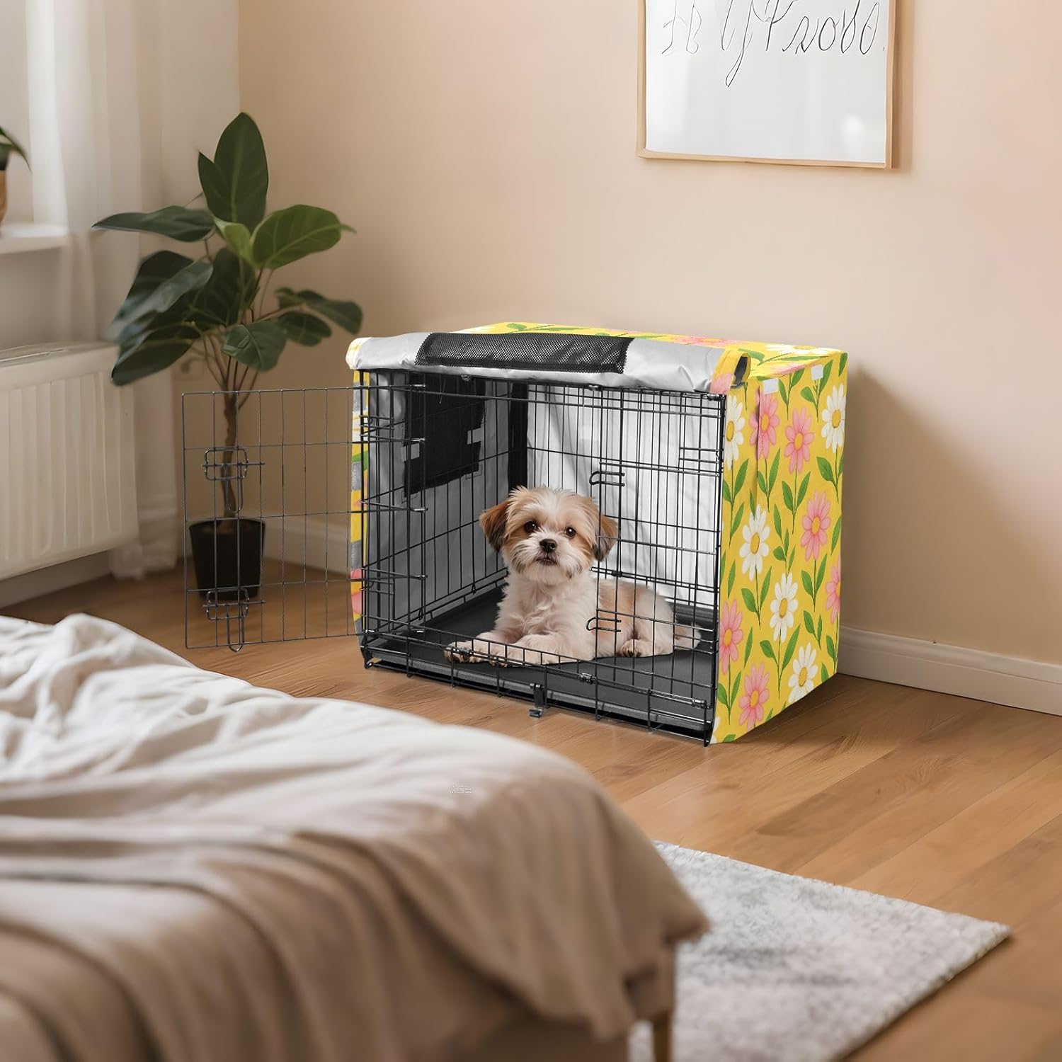 Weather-Resistant Dog Crate Cover is made of 600D silver-coated oxford fabric that provides exceptional protection against wind, rain, and sunlight. This material prevents your pet from scratching the crate and blocks most direct sunlight, ensuring a safe and comfortable space.Simple and Secure Setup features an easy fastening system, making it effortless to install without the need for tools. This cage cover fits securely onto your dog crate, ensuring it stays in place and provides protection at all times.Ventilation for Comfort with mesh windows on all sides, our dog cage cover ensures optimal airflow, keeping your pet cool and comfortable even during long periods inside the crate. The mesh design also provides privacy and security for your pet.Wind-Resistant and Stable with four adjustable tie-down straps at the bottom, this breathable dog crate cover stays securely in place, preventing it from being blown away by the wind or removed unintentionally. This feature ensures that your pet’s crate remains stable and protected.Versatile Use Ideal for both indoor and outdoor settings, this dog crate cover provides the protection your pet needs in various environments, whether at home or on the go. The compact design makes it easy to store and travel with.