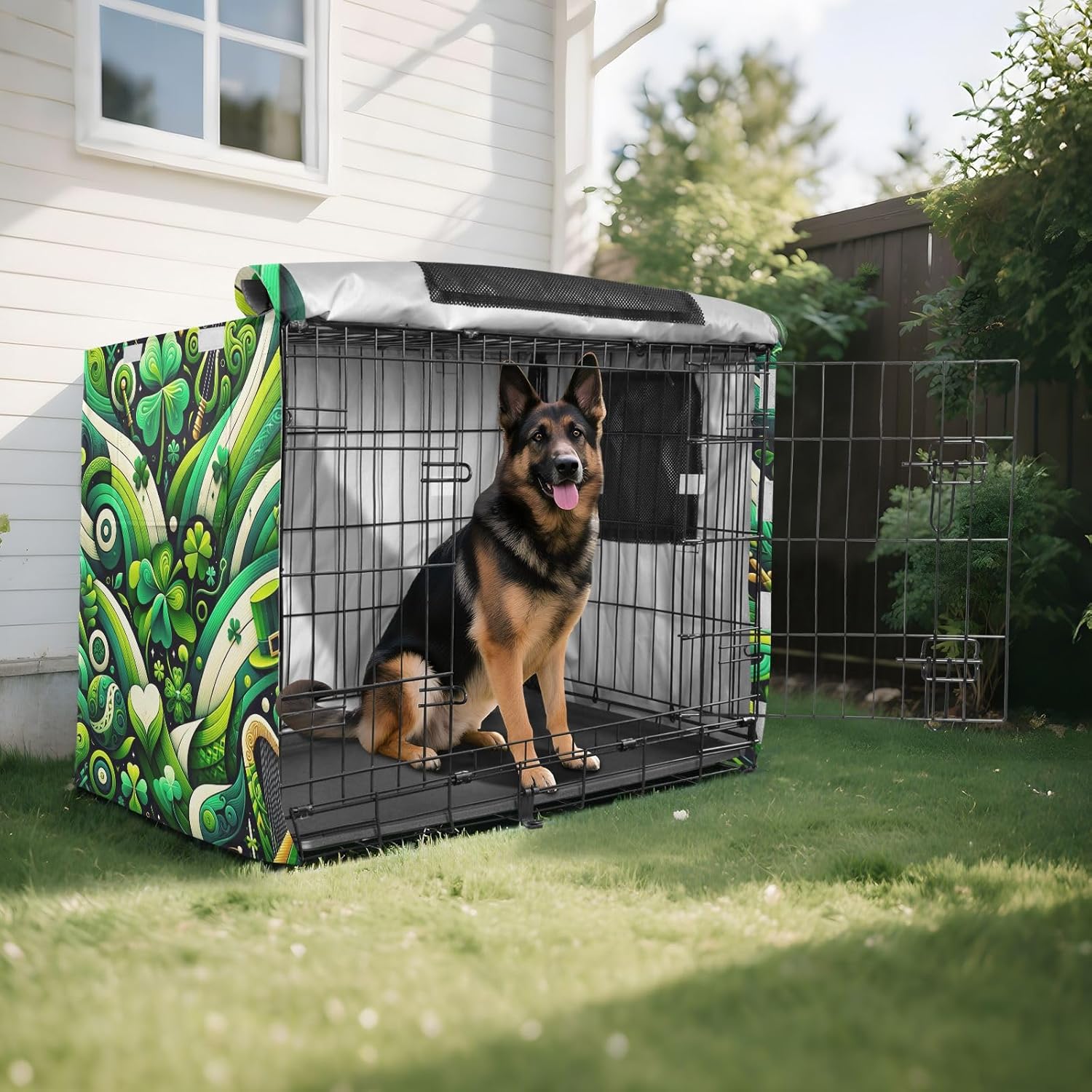 Weather-Resistant Dog Crate Cover is made of 600D silver-coated oxford fabric that provides exceptional protection against wind, rain, and sunlight. This material prevents your pet from scratching the crate and blocks most direct sunlight, ensuring a safe and comfortable space.Simple and Secure Setup features an easy fastening system, making it effortless to install without the need for tools. This crate cover fits securely onto your dog crate, ensuring it stays in place and provides protection at all times.Ventilation for Comfort with mesh windows on all sides, our breathable dog crate cover ensures optimal airflow, keeping your pet cool and comfortable even during long periods inside the crate. The mesh design also provides privacy and security for your pet.Wind-Resistant and Stable with four adjustable tie-down straps at the bottom, this travel crate cover stays securely in place, preventing it from being blown away by the wind or removed unintentionally. This feature ensures that your pet’s crate remains stable and protected.Versatile Use Suitable for both indoor and outdoor settings, this dog crate cover provides the protection your pet needs in various environments, whether at home or on the go. The compact design makes it easy to store and travel with.