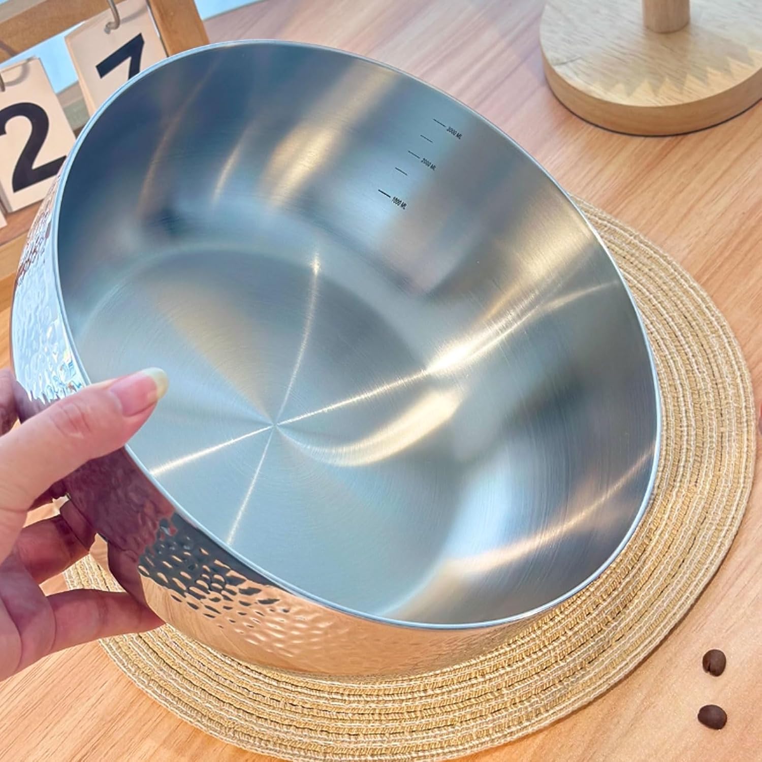 Convenient for storing and carrying food.Material: Stainless steel + glass coverSize: 24cmx9cm/9.4x3.5in28cmx9.9cm/11.0x3.9inCapacity: 3000ml/105.5oz,4500ml/158.3ozColor: silverScope of application: home, kitchen, restaurant, hotel, etc.Packing list: only includes Stainless steel mixing bowl with lid x1 (excluding other items shown in the picture)Kind tips1. Due to the difference in light and display, the color of the picture may be slightly different from the actual object, please refer to the actual object.2. The size is measured manually. If there is a slight error, please refer to the actual product received.3. Please wipe it clean immediately after use.4. For stainless steel products, please avoid scrubbing with hard objects such as steel wool.5. Stainless steel products may have slight wear and scratches on the surface, which will not affect the use.6. Before first use, clean it once, then rinse it with hot water, and wipe it dry inside and out before use.The nestable design saves space and makes it easy to store in shelves or cabinets.