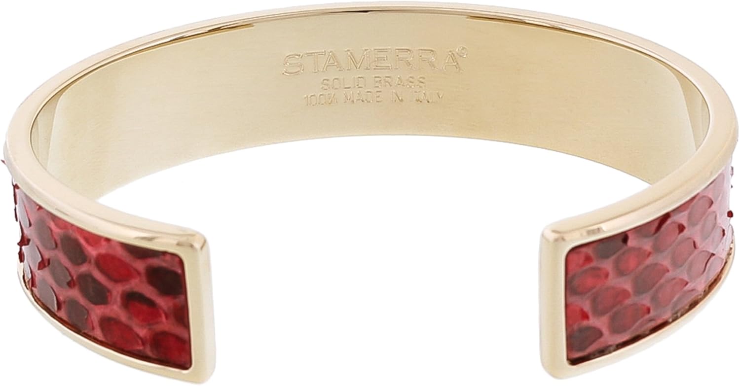 This stackable cuff bracelet by Stamerra features a python inlay wide band with an open back. Luxuriously crafted in Italy from plated solid brass ,the simple design makes this bangle versatile ideal for wearing on its own or stacking it with other pieces.