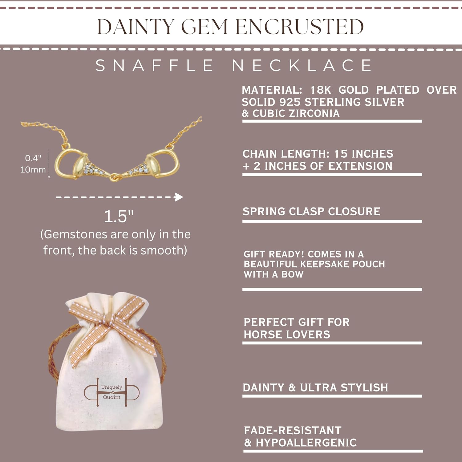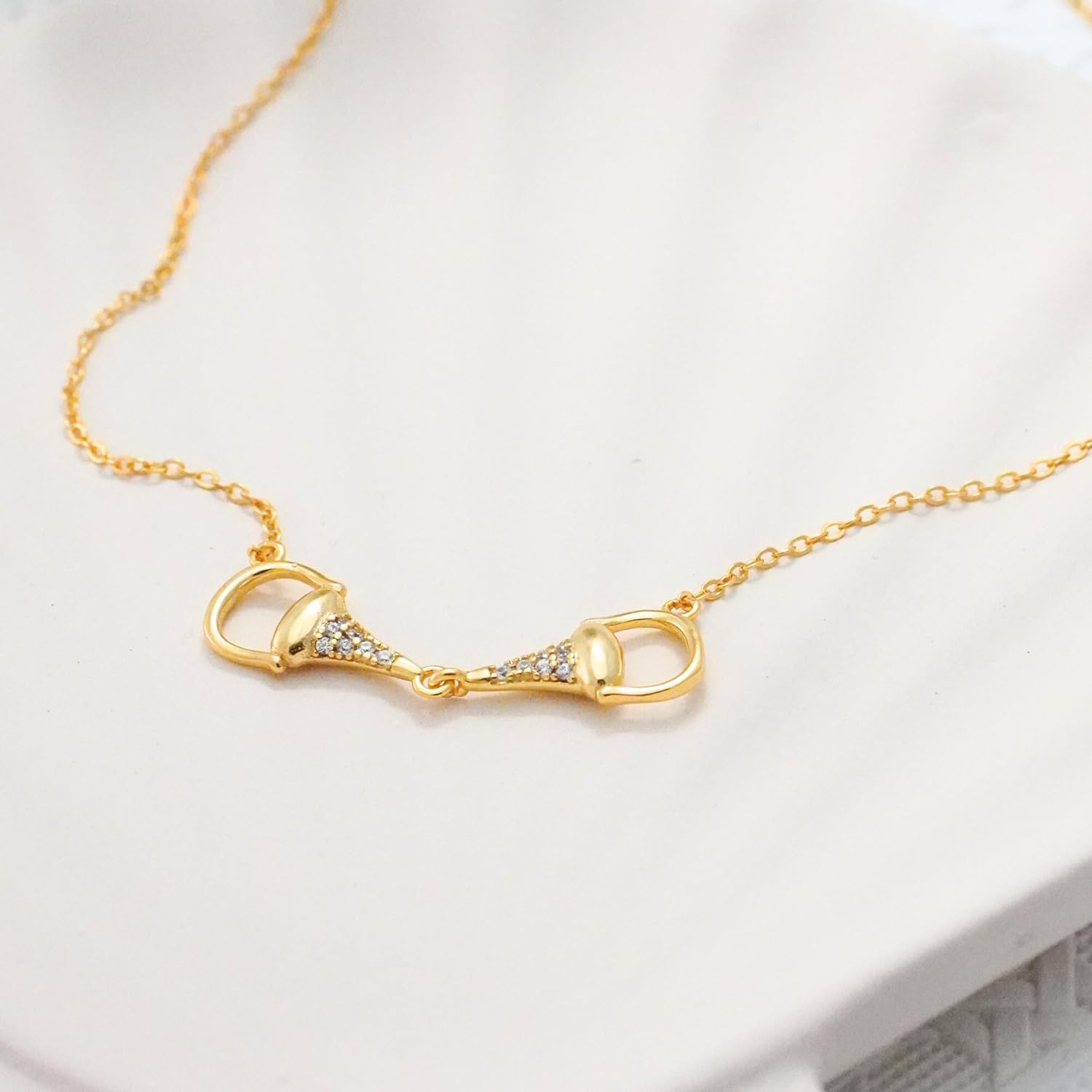 Sparkling Horizontal Horsebit Necklace – 925 Sterling Silver, 18K Gold-Plated & Rose Gold-Plated with Cubic Zirconia – Elegant Equestrian Jewelry Gift for Women Celebrate classic equestrian elegance with the Sparkling Horizontal Horsebit Necklace Collection, a refined lineup of heritage-inspired pieces reimagined with modern shimmer. Crafted from solid 925 sterling silver and available in three timeless finishes—high-polish silver, 18K gold plating, and 18K rose gold plating—each necklace features a horizontal horsebit pendant adorned with brilliant-cut cubic zirconia stones for understated sparkle and sophistication. At the heart of this design is the iconic horsebit motif—a symbol of strength, legacy, and refined taste. The sleek, elongated shape paired with CZ detailing brings just the right amount of shine, striking a balance between equestrian tradition and minimalist elegance. Whether worn solo or layered with other necklaces, it adds a subtle statement to any outfit. Each necklace includes an adjustable 15-inch chain with a 2-inch extender, offering a total wearable length of up to 17 inches. The chain is finished with a secure lobster clasp for comfortable, flexible styling. Made with nickel-free, hypoallergenic materials, these necklaces are safe for sensitive skin and tarnish-resistant for lasting brilliance. Choose your packaging: Cotton Pouch with Bow – Perfect for casual gifting and everyday storage. Suede Pouch in a Ribbon-Wrapped Jewelry Box – Ideal for elevated gifting, anniversaries, or bridal occasions. Whether you're gifting a loved one or adding a staple to your own collection, this sparkling horsebit necklace delivers timeless charm with a modern touch. From capsule wardrobes to “quiet luxury” style, it’s a meaningful piece made to endure—both in sentiment and shine.