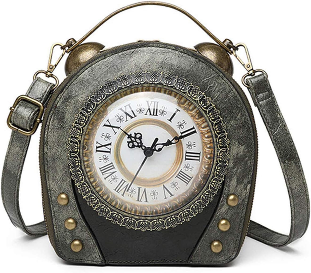 Antique Clock Bag This bag compliments an alternative fashionable outfit. Wear this bag in your hand for night-time or attach the adjustable cross-body strap to wear in the daytime. This special and unique clock bag design will make you stand out from the crowd. The metallic PU leather gives off the feel of a real metal clock. Add batteries and watch the cloth work. Is a clock bag the new watch? This bag is extremely spacious, with the zipped back pocket as well as the main bag space. L x W x H ? 20cm x 9cm x 19cm Batteries not included Occasion: wedding, banquet, prom and other special occasions. Dating, family reunion, friends party and other daily events. Delivery content: 1 x Handbag Style: Women's handbag Fabric texture: PU Lining texture: polyester cotton Bag shape: round Bag trend style: small round bag Opening method: Zipper Strap root number: single Bag size: medium pattern: plain Processing methods: soft surface Notes: Colors shown may vary slightly from actual color due to screen calibration 1 inch error range is allowed due to different measure methods. As an honest Amazon seller, we offer convenient and efficient after-sales service; Measurements refer to height, size can measure 2cm / 1inch inaccuracy due to hand.