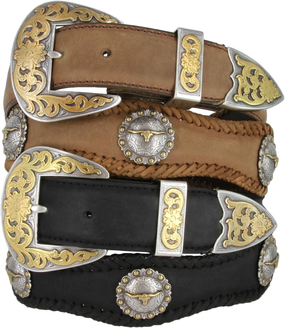 Steer Berry Longhorn Steer Conchos Western Leather Belt 1 1/2". Our Belts are measured from the fold to the center hole at the tip end. Measure where you wear the belt in order to get the best size.