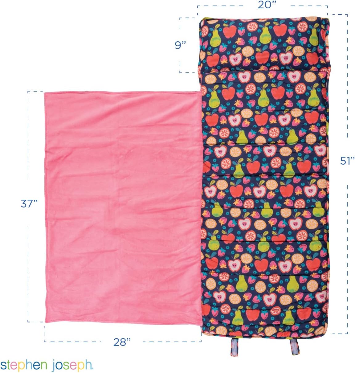 Nap time never looked so good than with a Stephen Joseph All Over Print Nap Mat. This all-in-one nap mat will have your child snuggling down to sleep before you've finished reading their favorite bedtime story. It's so soft and fuzzy you'll want to get in too, and the printed patterns can really set off your little one's imagination for dreamland. It's also great for camping and sleepovers as it rolls up with an easy-to-carry shoulder strap and has a useful front pocket.