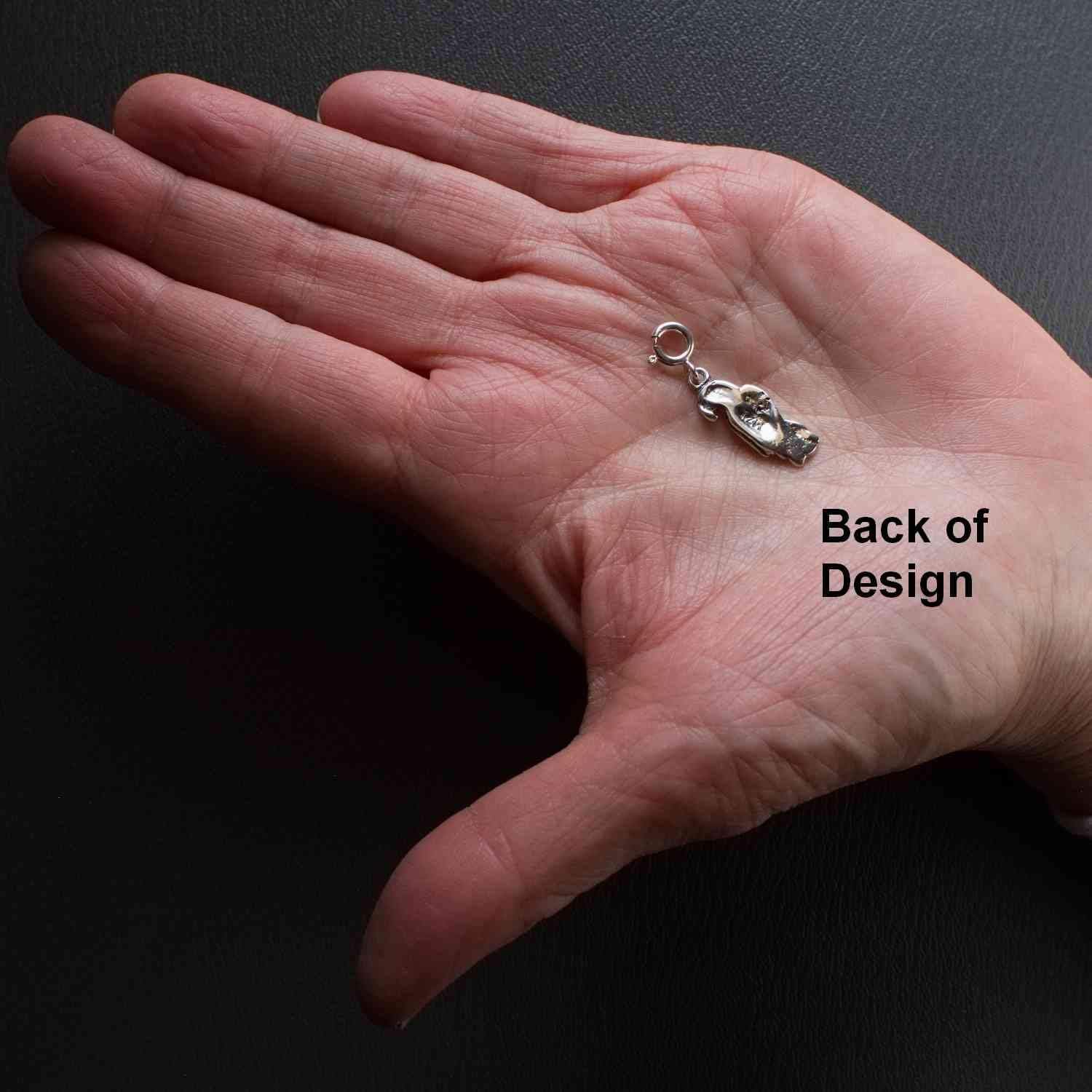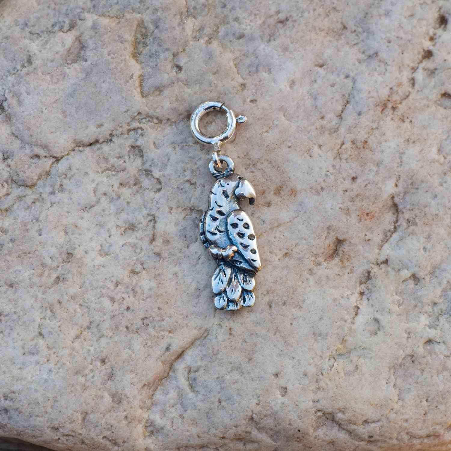 For the parrot lover on your gift list…this sterling silver African Grey charm is the perfect size; not too small to see all the details and not too big to fit in amongst her other treasured charms. The parrot charm measures 7/8" high and 5/16" wide. It comes with a silver spring ring to attach it right to her bracelet.