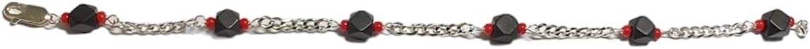 Elevate your style with this striking beaded bracelet. Crafted with precision, it features Azabache Jet beads and vibrant red accents strung along a sturdy curb link chain. The combination of bold hues and unique shapes creates a captivating visual appeal that adds a touch of edginess to any outfit. Measuring 8 inches in length, this bracelet offers a comfortable and adjustable fit for most wrist sizes. Whether dressing up for a special occasion or adding a statement piece to your everyday look, this accessory is sure to turn heads.