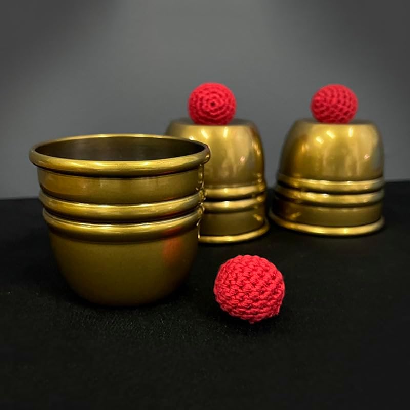 The cups and balls is a classic of magic, magician makes the balls pass through the solid bottoms of the cups, jump from cup to cup, disappear from the cup and appear in other places, or vanish from various places and reappear under the cups. Facilitate a large final load - see how a standard size tennis ball can be easily fit into the cup. Features: This cup is an aged heavy brass cup. When you strike the cup, it will produce crisp sound.