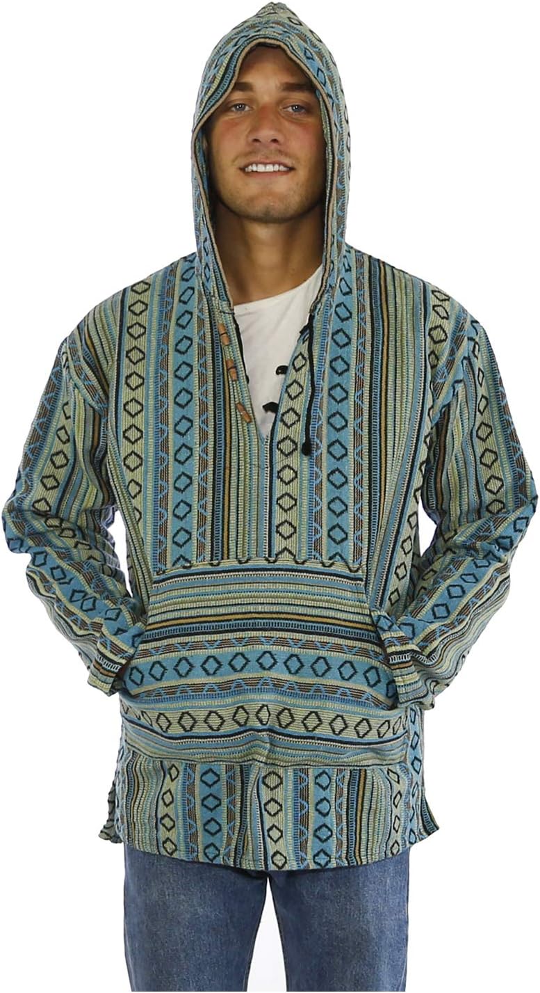 Sunshine Joy Woven Baja Style Pullover Hoodie Hooded Jacket --- Available in over 10 color combos --- A unique twist on the ever popular baja, our new woven hoodies are available in a variety of vibrant colored fabrics. The perfect outerwear for those cool summer nights and sunny fall days ---- 100% Cotton --- Made in India using traditional methods.