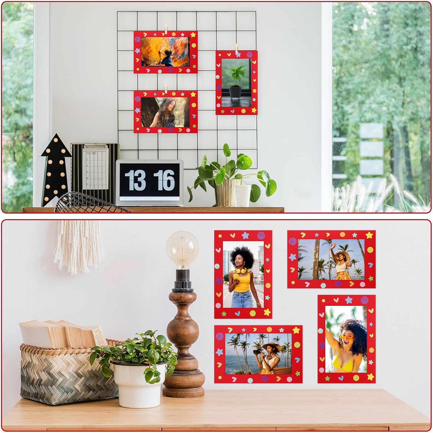Features: Portable design: The paper frame is light and portable, won't take up too much space, and you can carry it to other places easily, will bring you convenience in using. Considerate presents: If you have friends who need some cardboard frames in the daily life, you can give them ours, they will like these gifts and feel happy. Specifications: Main material: paper Color: as shown in the picture Size: the inner frame is about 3 x 5 inches/ 8 x 13 cm, outer frame is 7 x 4.7 inches/ 17.8 x 12 cm Package includes: 100 x Paper photo frames 51 Sheets of stickers 100 x Clips 5 x Strings Notes: Manual measurement, please allow slight errors on size. The color may exist slight difference due to different screen displays.