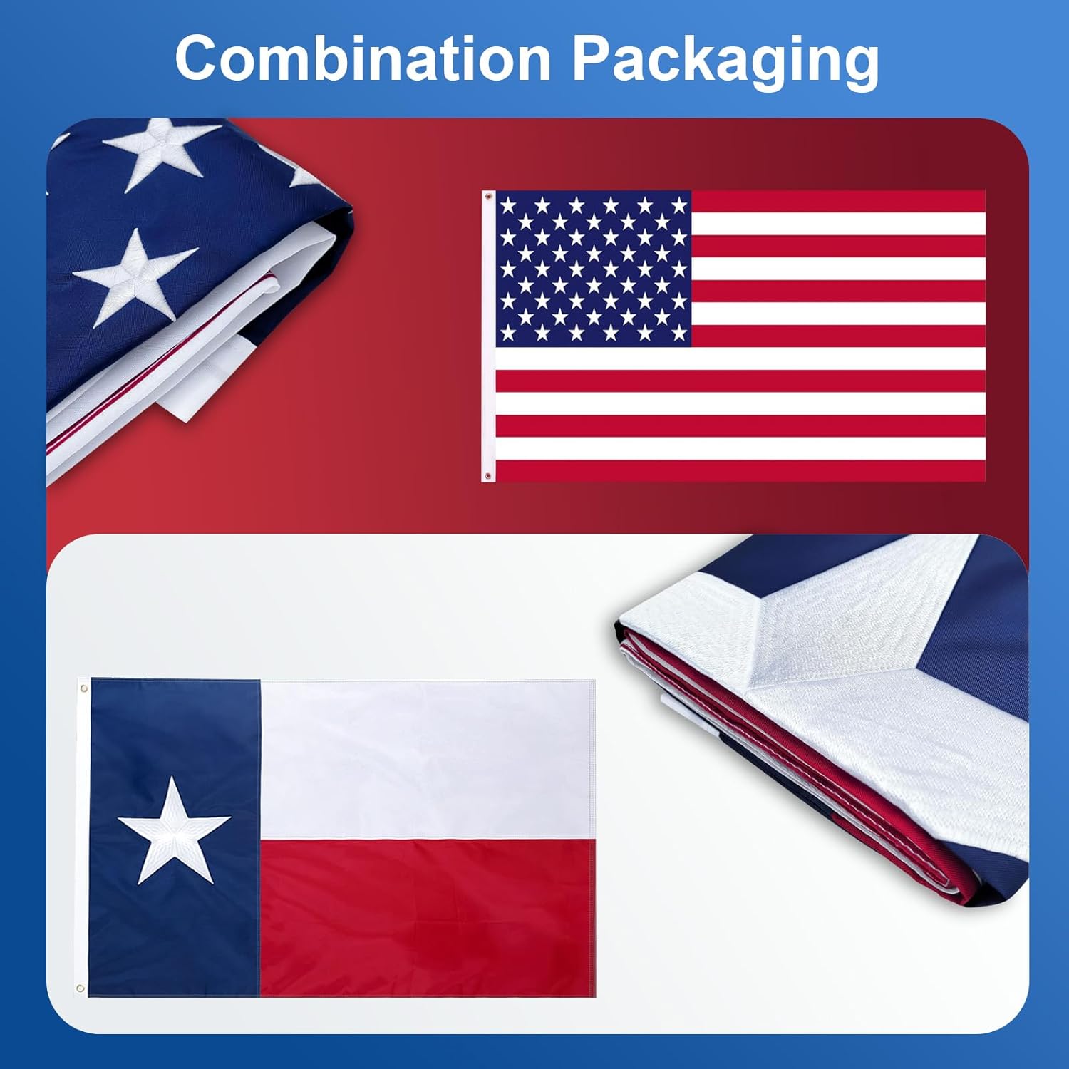 | Color | Texas Flag + USA Flag 3x5 |