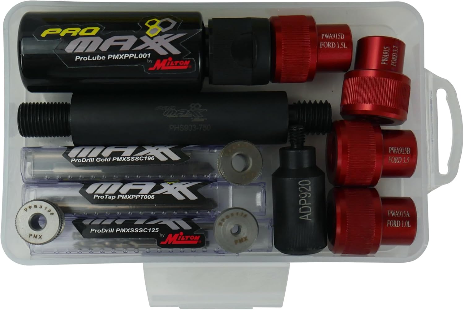 The PMXPWP915KIT Ford EcoBoost Fuel Injector Puller Combo Kit by ProMAXX Tool is the all-in-one solution for removing stuck injectors across four Ford engine platforms: 1.0L, 1.5L, 3.5L, and 3.7L EcoBoost. Engineered for professional technicians, this air hammer-powered kit eliminates the need for engine or cylinder head removal—saving up to 15 labor hours per job and delivering fast, damage-free injector extraction. Designed to tackle common issues caused by high engine temperatures, carbon buildup, and seal swelling, the PMXPWP915KIT includes precision-engineered adapters and fuel line fittings for each supported engine. The complete system also features a ProPlate jig, bushing-guided ProDrill bits, a ProTap thread restorer, and a hammer shaft—all optimized for use with a 3,000 BPM bi-directional air hammer (sold separately). Ideal for servicing a wide range of Ford vehicles—including Fiesta, Focus, Fusion, Escape, Edge, Transit, and more—this combo kit gives technicians unmatched versatility and reliability in high-volume shop environments. Key Features & Benefits: Covers four Ford EcoBoost engines: 1.0L, 1.5L, 3.5L, and 3.7L Eliminates engine teardown: Save up to 15 hours of labor per vehicle Complete fuel line adapter set included: Ensures perfect fit across all supported models Air hammer-powered system: Pairs with LT955-AH (sold separately) for efficient, clean extractions Precision components: Includes jig, ProDrill bushings, gold drill bits, ProTap, and cutting fluid for professional results Whether you’re dealing with a seized injector in a Ford Fusion or a carbon-clogged unit in a Transit van, the PMXPWP915KIT gives your team everything needed for safe, repeatable, on-the-vehicle injector removal. Trusted by pros, built for productivity.