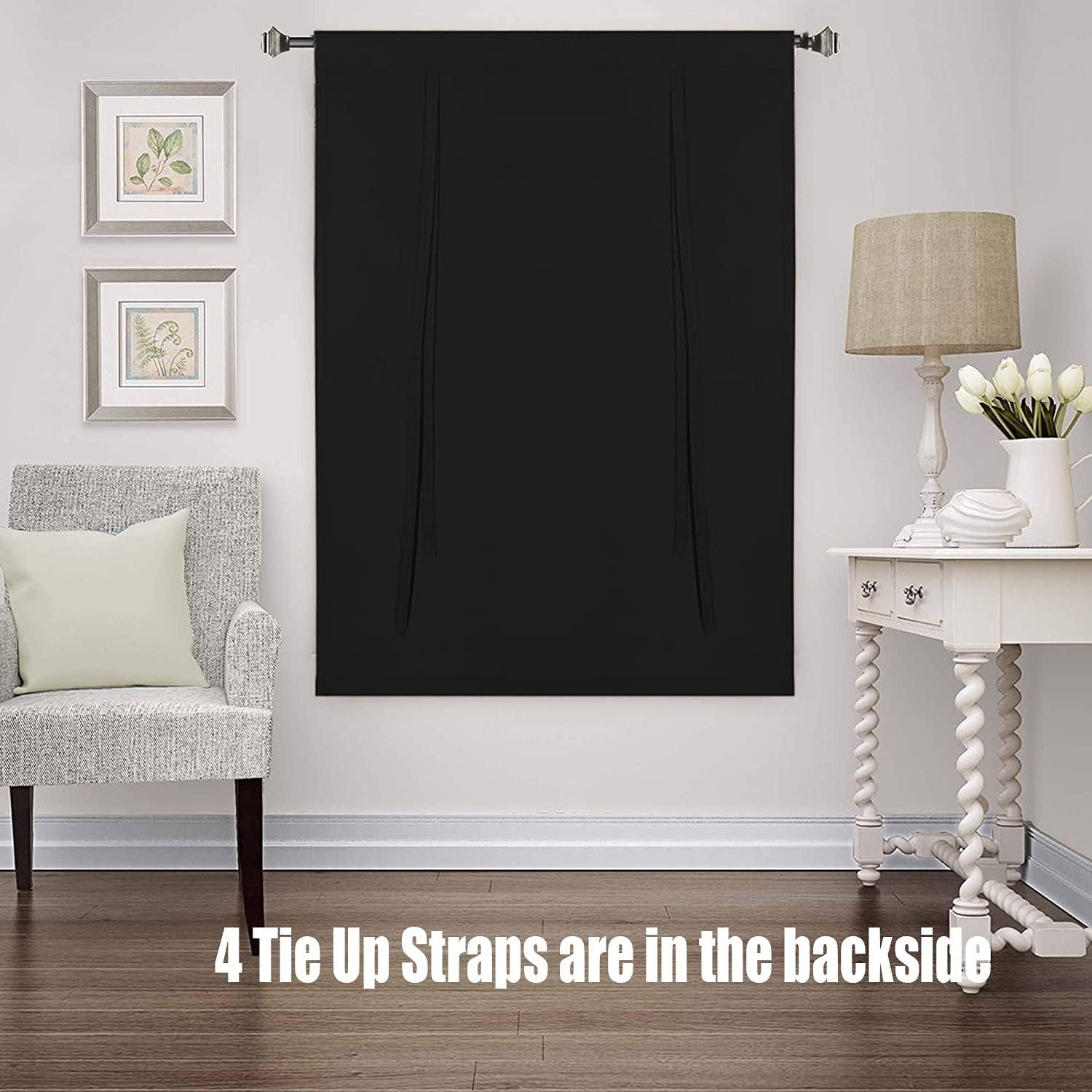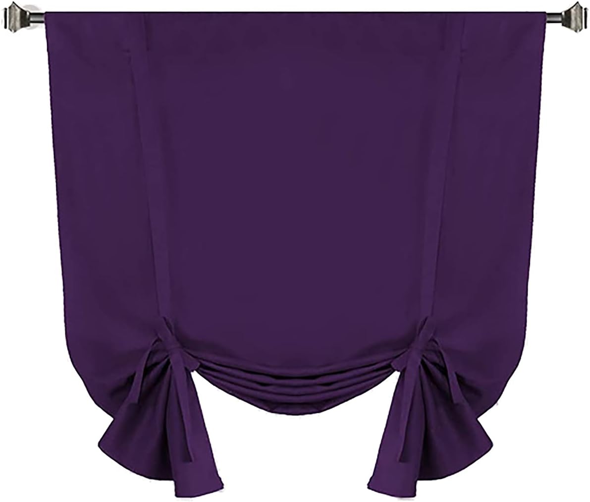 Cozomiz Thermal Insulated Blackout Curtain Adjustable Tie Up Shade with Rod Pocket Panel Window Drapes Curtain Valances for Kitchen, Bathroom, Basement and Small Windows ๐ Design: this solid color blackout window tie up curtain. Size measures: 42"W x 63"L. Constructed with 3" rod pocket which fit up to 1 1/2" diameter basic or decorative curtain rods. ๐ Quality Fabric: Made with 100 Percent yarn dyed spun polyester, Wrinkle resistant, Lint and snag resistant. Long-lasting fabric will actually soften and improve with repeated washing, and the colors will retain the vibrant colors through years of washing. ๐จ Easy Adjust: The Tie-Up Curtain Shade is a one-piece curtain that includes two adjustable ties that can be adjusted to the height you desire. ๐ Ideal Decor: Our window valances can decorate your kitchen, living room, bathroom, bedroom and other windows, give a natural touch to your home and add lively atmosphere for the holidays. ๐ค Occasion: Allows nature light in while giving you a certain amount of privacy, perfect for kitchen, cafe, bathroom, loft, basement, office room and other windows. Information: Size: 42"W x 63"L Sellable in many additional types with same pattern, including curtain valance, tie up curtain, and tiers for kitchen/bathroom Machine washable in using cold water and on a gentle cycle, tumble dried on a low setting and no bleached For proper fullness, panels should measure 2-3 times the width of your window, please measure your window/door before ordering