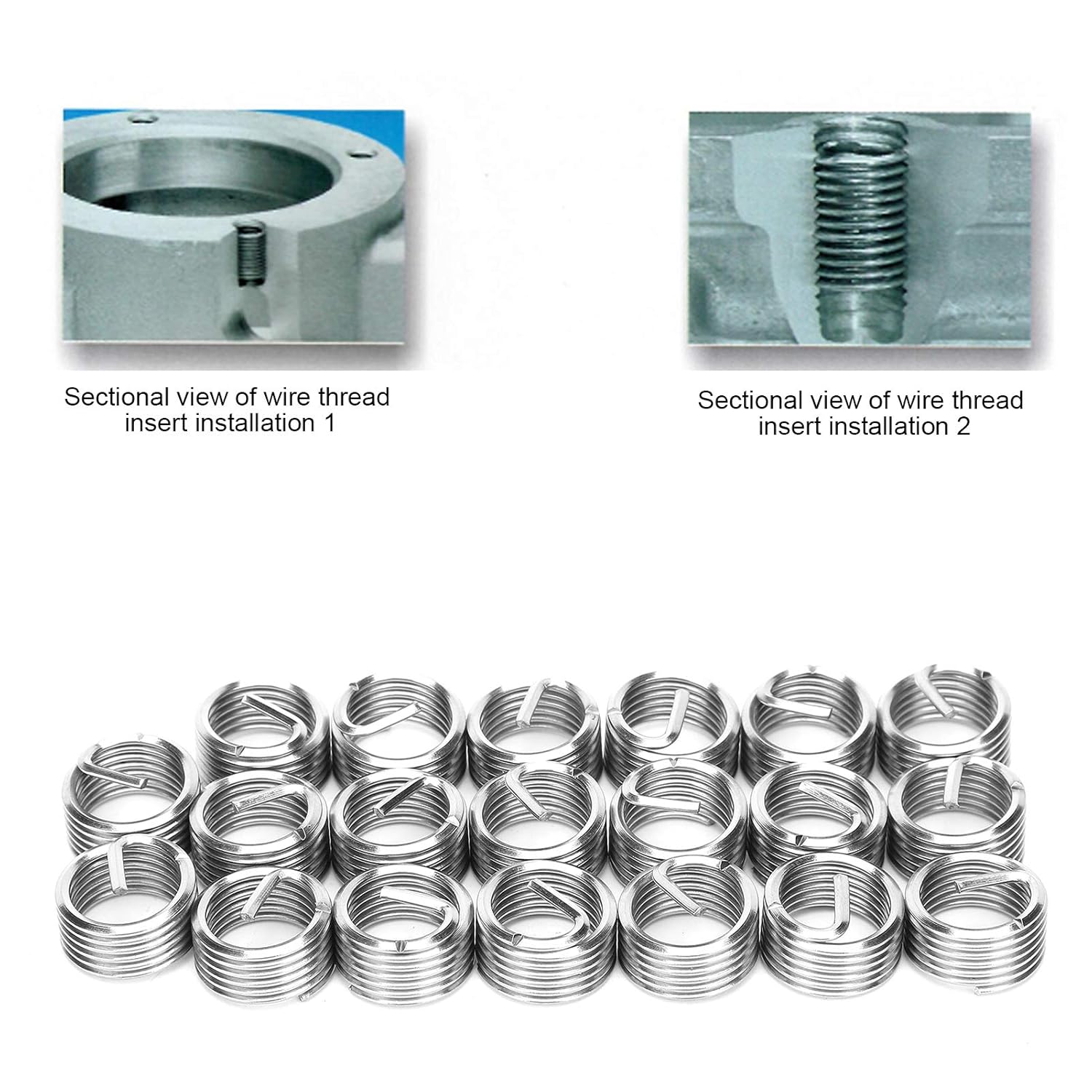 Product description Item Type: Thread RepairMaterial: SUS304Model: M12 x 1.5Thread Specification: M12 x 1.5Outside Diameter Before Installation: Approx. 14.3-14.8mm / 0.56-0.58inDrill Bit Diameter: Approx. 12.4mm / 0.5in1D Length After Installation: Approx. 12mm / 0.5inNumber of Turns Before Installation: 6.21.5D Length After Installation: Approx. 18mm / 0.7inNumber of Turns Before Installation: 9.8 2D Length After Installation: Approx. 24mm / 0.9inNumber of Turns Before Installation: 13.52.5D Length After Installation: Approx. 30mm / 1.2inNumber of Turns Before Installation: 17.1Wire Thread Insert Model Description: For Example: M3 x 0.5 x 1.5D, which means that after the screw set is completed, the female thread is M3, the pitch is 0.5, and the length is 1.5D (length is 1.5 times the diameter, that is, 1.5 x 3=4.5mm ), the length here refers to the length after installation.Wire thread inserts are also called threaded sheaths, stainless steel threaded sleeves, wire sleeves, and braces. They are a new type of internal threaded fasteners made of high-strength, high-accuracy diamond-shaped cross-section steel wires; Application to low-strength engineering materials such as aluminum alloy, zinc alloy, copper, plastic, etc., can significantly improve thread strength and wear drag.Package List:20 x Thread Repair Manufacturer Contact Information 1