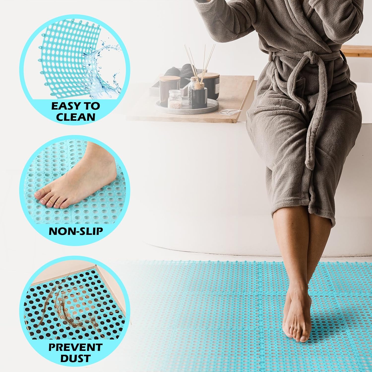 Features: These multifunctional interlocking floor tiles with drainage holes can be directly applied in public places such as family apartments, villas, hotels, commercial buildings, schools, stadiums, hospitals, factories and anywhere outdoors. The interlocking mat is made of TPE material, waterproof, corrosion resistance, and wear resistance, effectively protecting the ground from damage. Adopts interlocking design, each tile can be quickly connected to the surrounding units to form a whole, not easy to loosen, better stability and reliability. Specifications: Material: TPE Color: blue Size: approx. 11.8 x 11.8 inches / 30 x 30 cm Package includes: 50 x Black interlocking floor tiles mats Notes: Manual measurement, please allow slight errors on size. The color may exist a slight difference due to different screen displays.