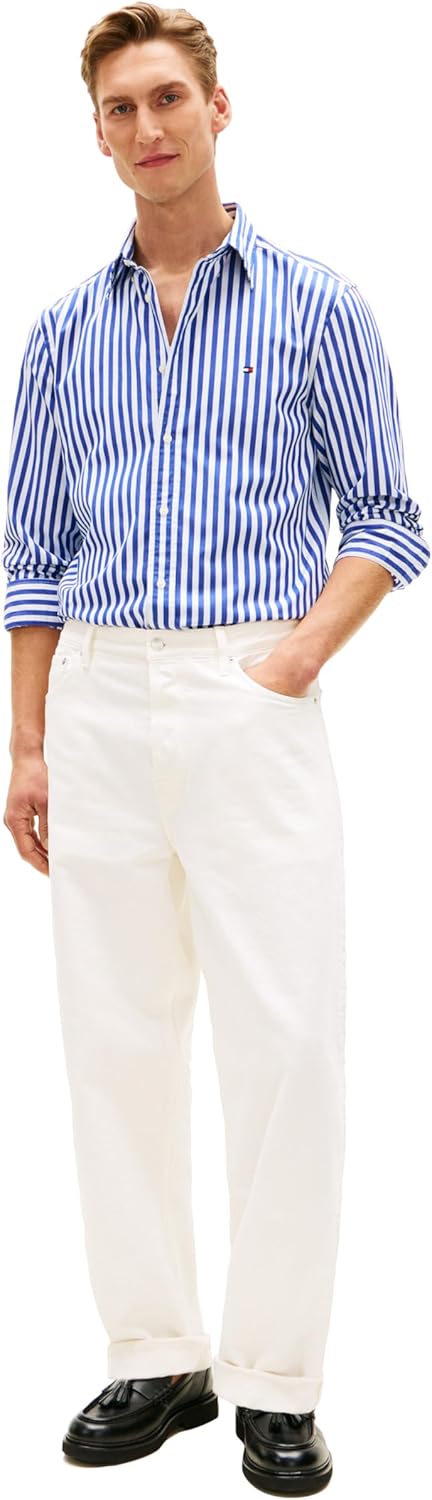 Introducing Tommy Hilfiger's collection of men's button-down shirts, meticulously crafted for style and comfort. Made from 100% cotton, these long-sleeve casual shirts offer an extra level of softness, making them the perfect choice for everyday wear in any weather. Tommy Hilfiger's button-down shirts for men are constructed from premium organic cotton and feature detailed button-down collars, available in a range of solid colors, gingham, stripes, checks, and flannel designs. Comfortable and naturally breathable, these shirts are a versatile addition to any wardrobe. Designed with a regular fit that's slightly slimmer through the chest and shoulders, these long-sleeve button-down shirts offer a casual yet refined look, complete with signature flag embroidery. Pair them effortlessly with your favorite Tommy Hilfiger shorts, pants, jeans, or jackets for versatile styling options suitable for any occasion, whether it's a casual outing or a formal event. Ideal for daily wear, work, school, events, vacation, or sports, these men's shirts are a must-have. Treat yourself or surprise a loved one with this timeless piece, perfect for fathers, brothers, boyfriends, husbands, sons, or friends. Elevate your everyday style with the unbeatable quality and sophistication of Tommy Hilfiger's men's button-down shirts.