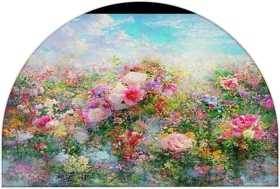 A half round door mat makes your home beautiful add a prefect taste. A comfortable and beautiful half moon rug washable also makes you feel at ease and softness under your feet.Product characteristics:1. Variety Sizes: Five sizes of 24x36inch, 16x24inch, 18x30inch, 20x32inch and 32x48inch differ size and patterns for your choice.2. Beautiful and generous: exquisite patterns can play a decorative home effect.3.Easy to clean: After dirty, thr half circle door mat can be patted, shaken and washed to protect the floor.4. Protection fabrics: Durable fiber imitating cotton and linen, comfortable, easy to clean, protect the ground, durable, not easy to fade.Reminder:1. Due to the soft texture of half moon rug and manual production, there is an error of about 1 inch in cutting.2. Please excuse me for the possible chromatic aberration due to the different resolution of personal display.3. Because of the needs about package , folding half circle door mat has creases when shipped. It can be placed for several days and automatically disappear creases. It can also be used after ironing.Good after-service:We offer high quality, reasonable price products. If you are not satisfied with any quality or product, we will provide a better after-sales service. Please feel free to contact us .