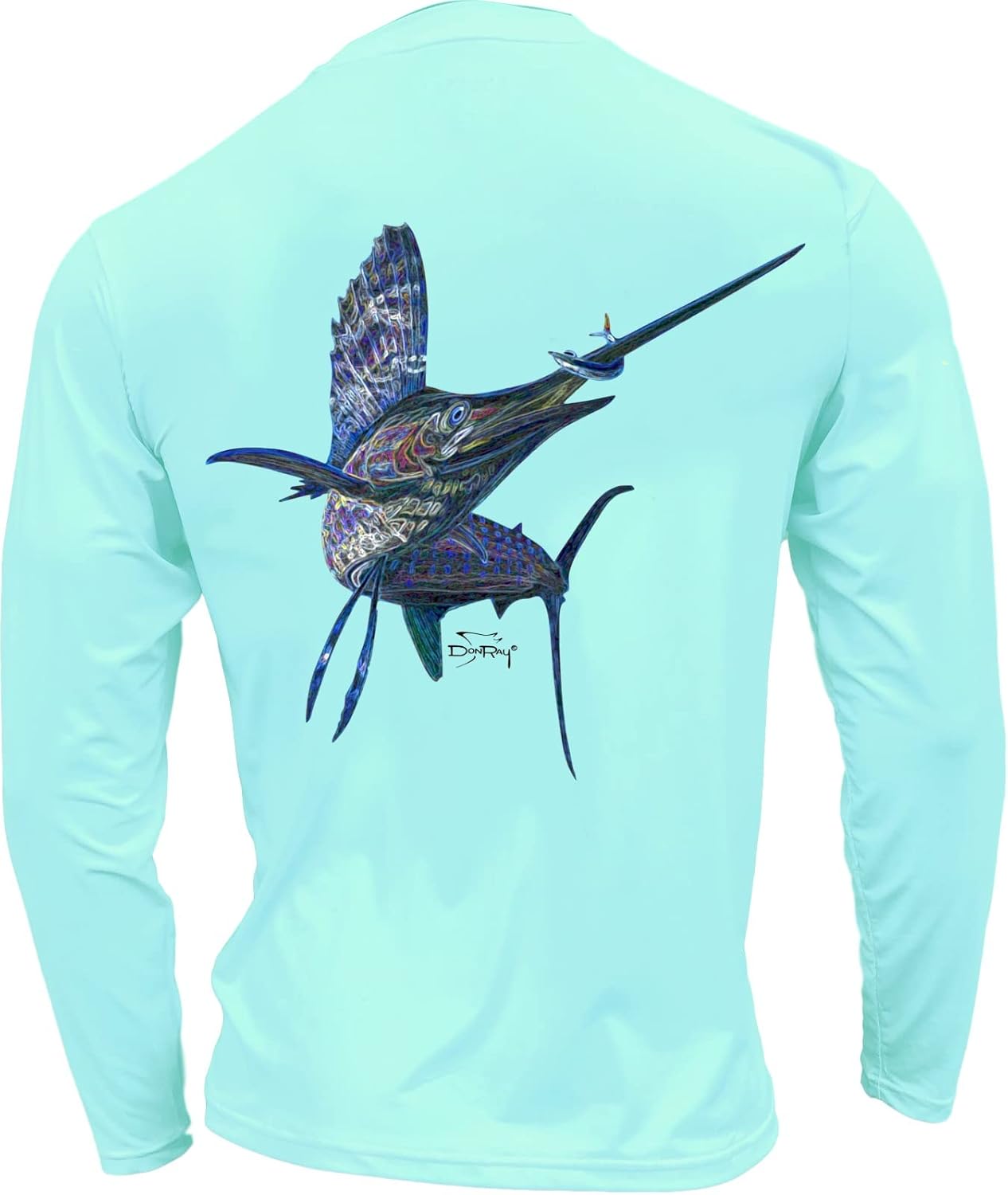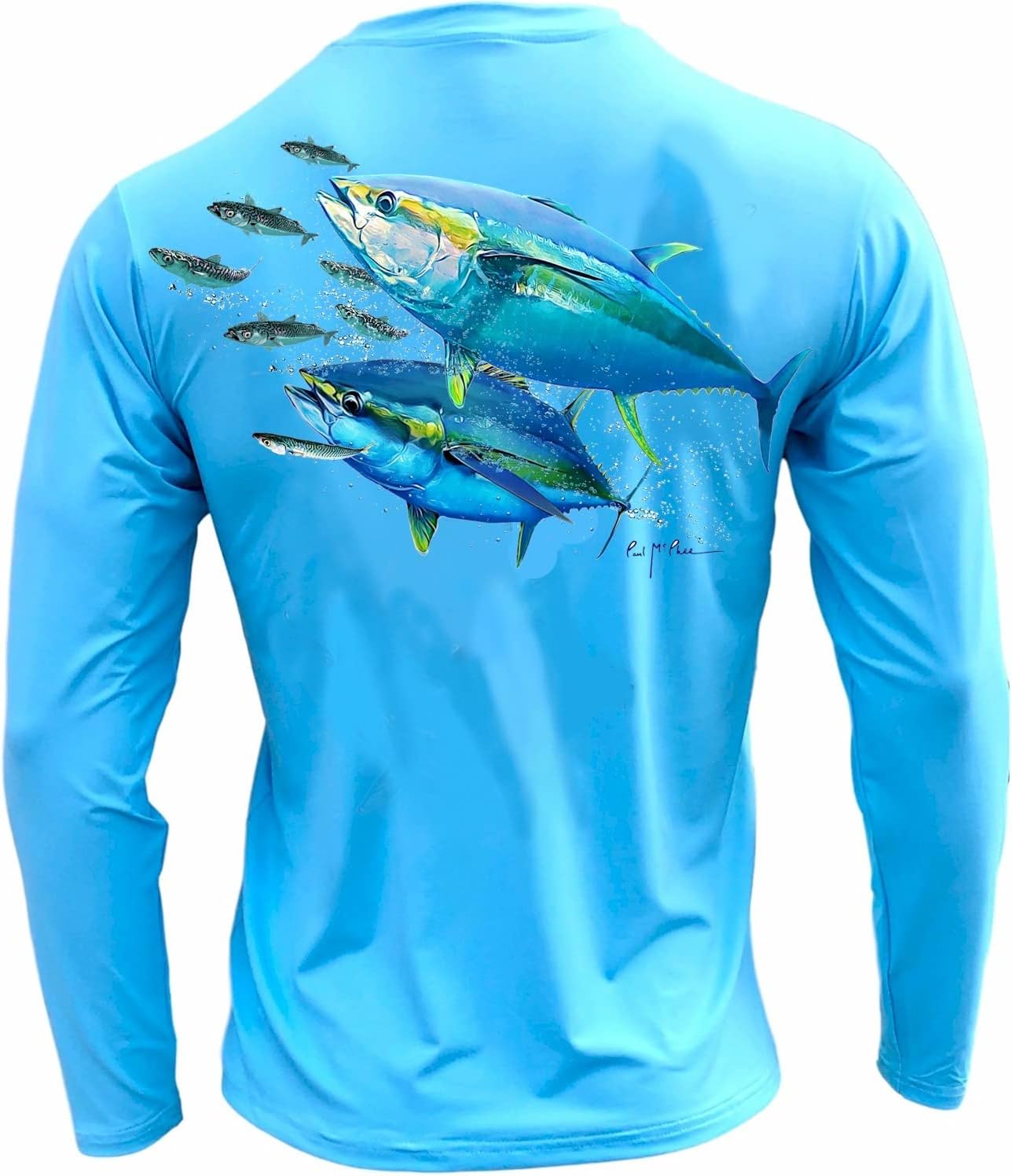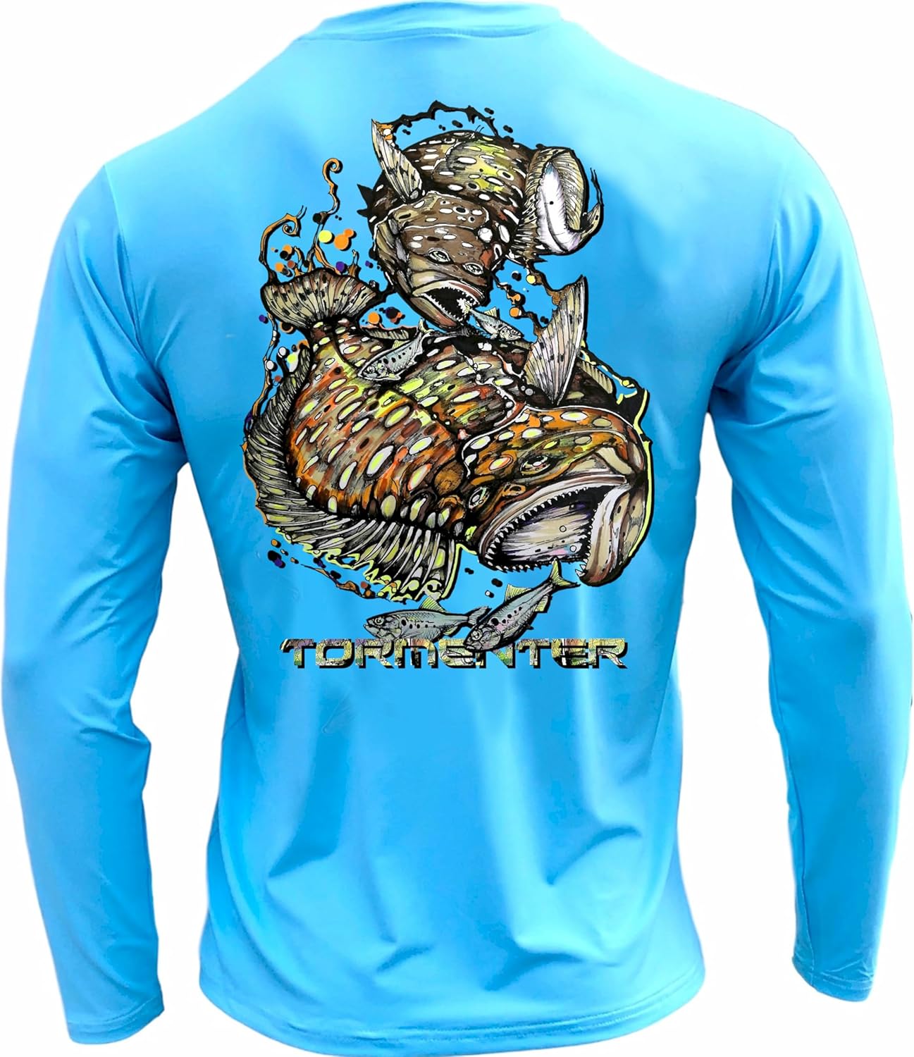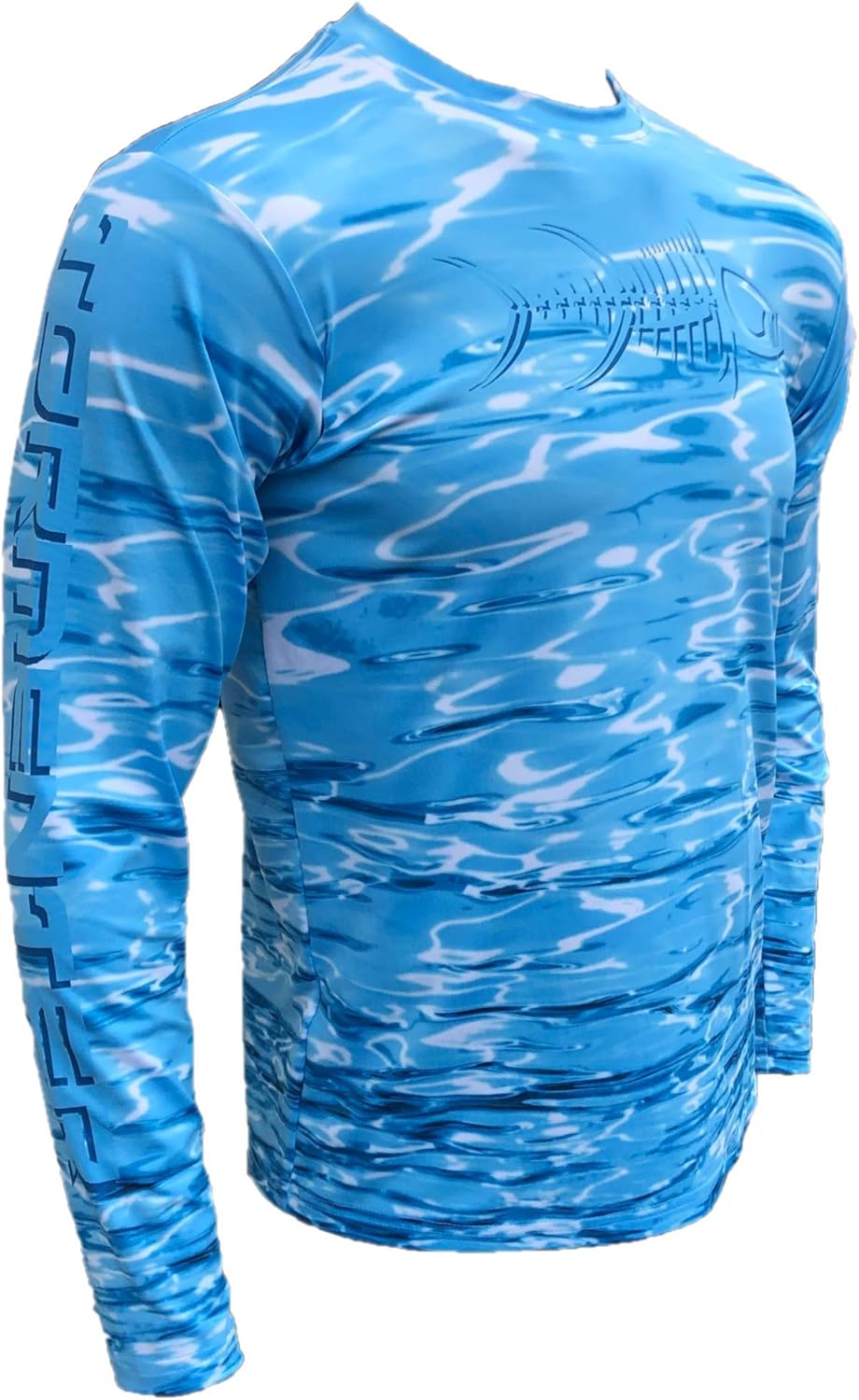 Our SPF50, ultra snag resistant, moisture wicking, lightweight shirts will keep you cool and comfortable while out on the water or outdoors even during the hottest Summer days. Our performance shirts are made with a special 95/5 Poly/Spandex blend which is knitted, not woven giving them the ability to keep you cooler and dryer than most other brands. Our shirts also have fitted sleeve cuffs preventing them from sliding past the wrist allowing the user to work more freely. Awesome, unique artwork provided by highly recognized artists.