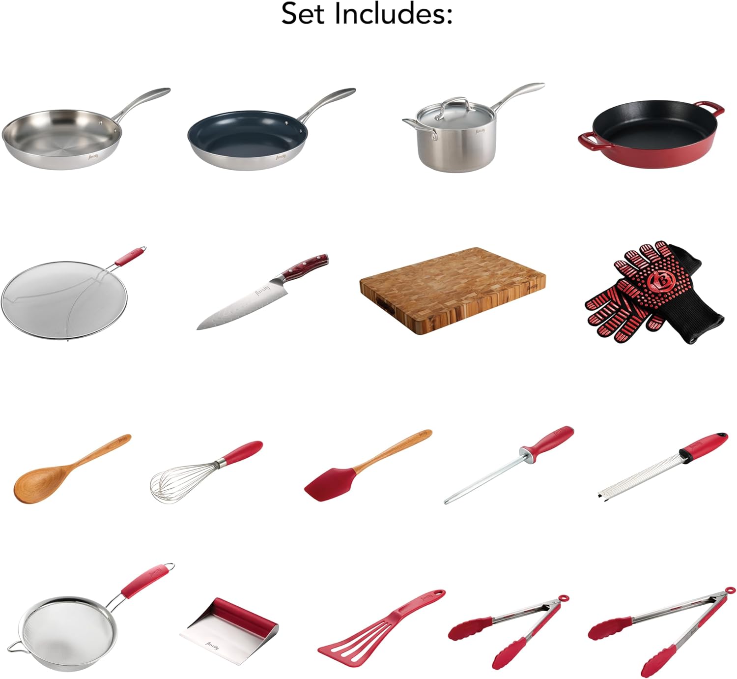 Custom designed by FlavCity's Bobby Parrish, in partnership with Tramontina, the FlavCity Essential Cookware Set is the most essential cookware set you can buy. Crafted from top-quality materials, built to last, and Bobby Approved, this set is loaded with 19 kitchen essentials - everything you need and nothing extra that you don't! Each piece is customized by Bobby. This is the perfect starter cookware set. Great for small kitchens. Because every piece of wood contains its own distinctive appearance, the pattern and color of your cutting board will vary from the sample images shown.
