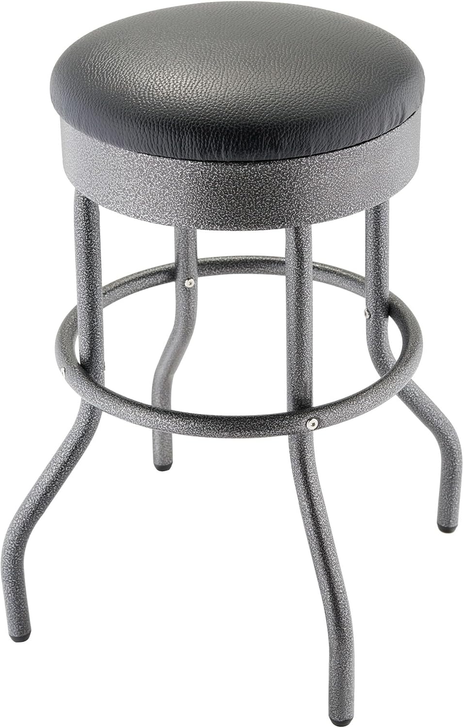 Elevate your seating game with the 25" TRINITY Counter Stool, a sleek blend of durability, comfort, and style. The Black Anthracite frame features a textured, duo-toned finish that resists rust and corrosion, while the cushioned faux leather seat keeps things modern and comfortable. With a smooth 360-degree swivel, you’ll never miss a moment, whether at the counter, kitchen island, or bar. Built tough with a 300 lb weight capacity and single-ring construction, it’s as sturdy as it is stylish. Adjustable feet levelers keep things stable on uneven surfaces, making this stool a versatile fit for any space. Modern, practical, and built to last, this is counter seating, reimagined.